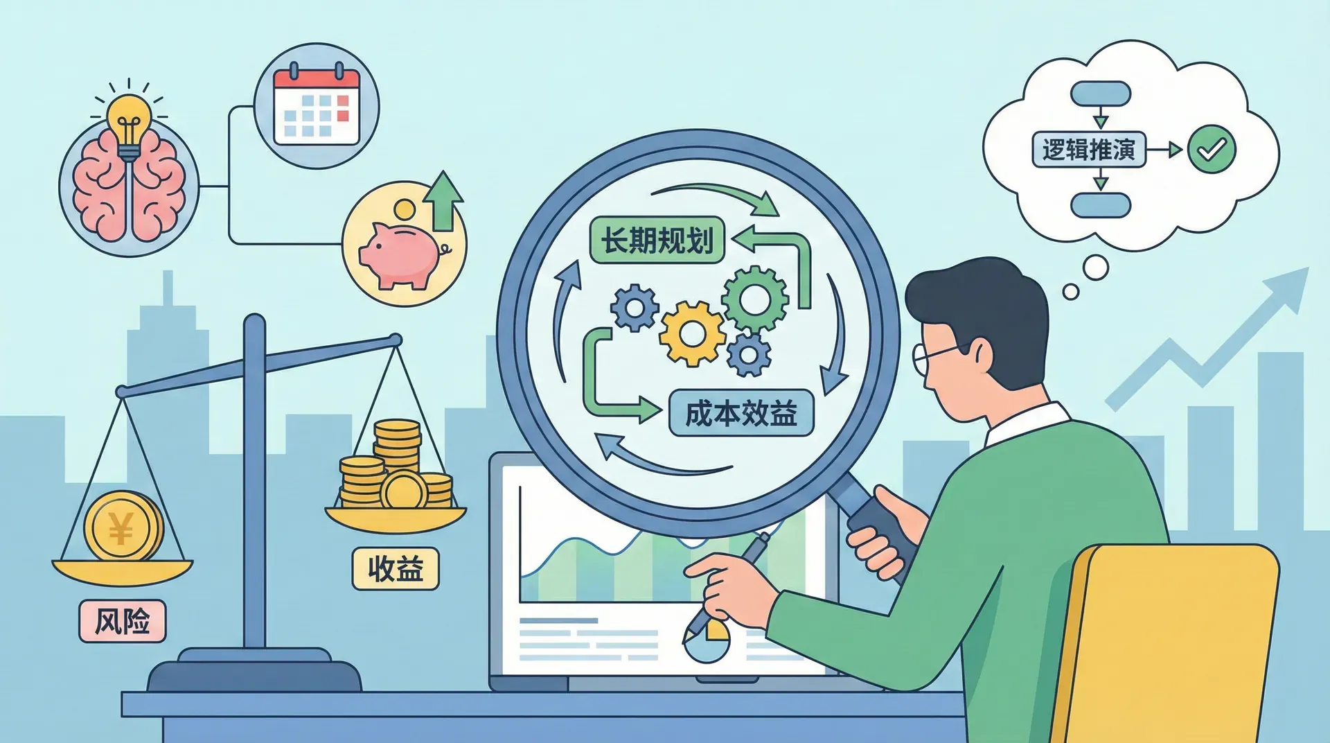 理性思维的核心能力在于能够同时在记忆中保持多个需要分别处理或按照规则组合的想法。比如,当你在超市购物时需要记住购物清单的同时计算总价格,或者在选择投资产品时需要同时考虑收益率、风险等级和流动性等多个因素。直觉思维无法胜任这种多线程的信息处理。