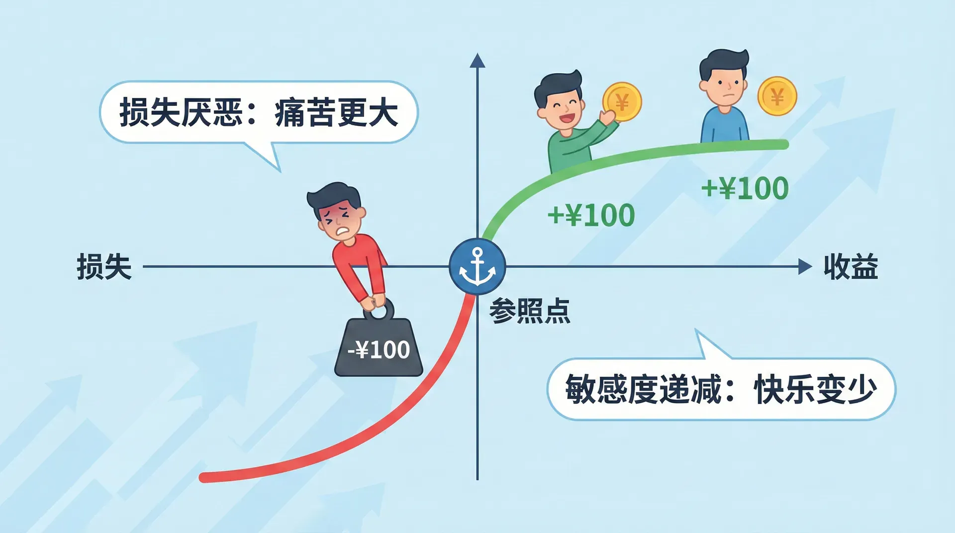 卡尼曼和特沃斯基提出前景理论时,发现了两个重要现象:一是人们在意“得失”远甚于绝对财富水平,二是他们对结果分配的心理权重,常常与实际概率很不一致。这两点共同解释了人类决策中“四重模式”的独特心理偏好。