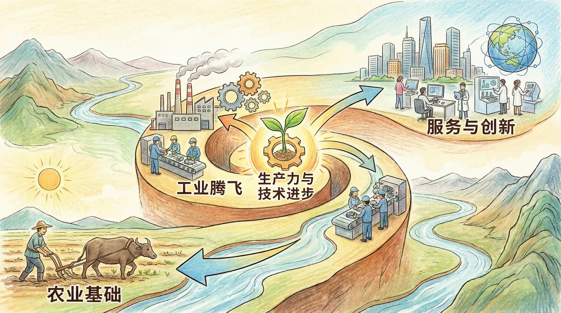 经济发展的自然进程揭示了人类经济活动的基本规律。城乡之间的有机互动构成了经济发展的基础动力,农业、制造业、贸易之间的合理配置决定了发展的质量和效率,而制度环境和政策导向则影响着发展路径的选择。