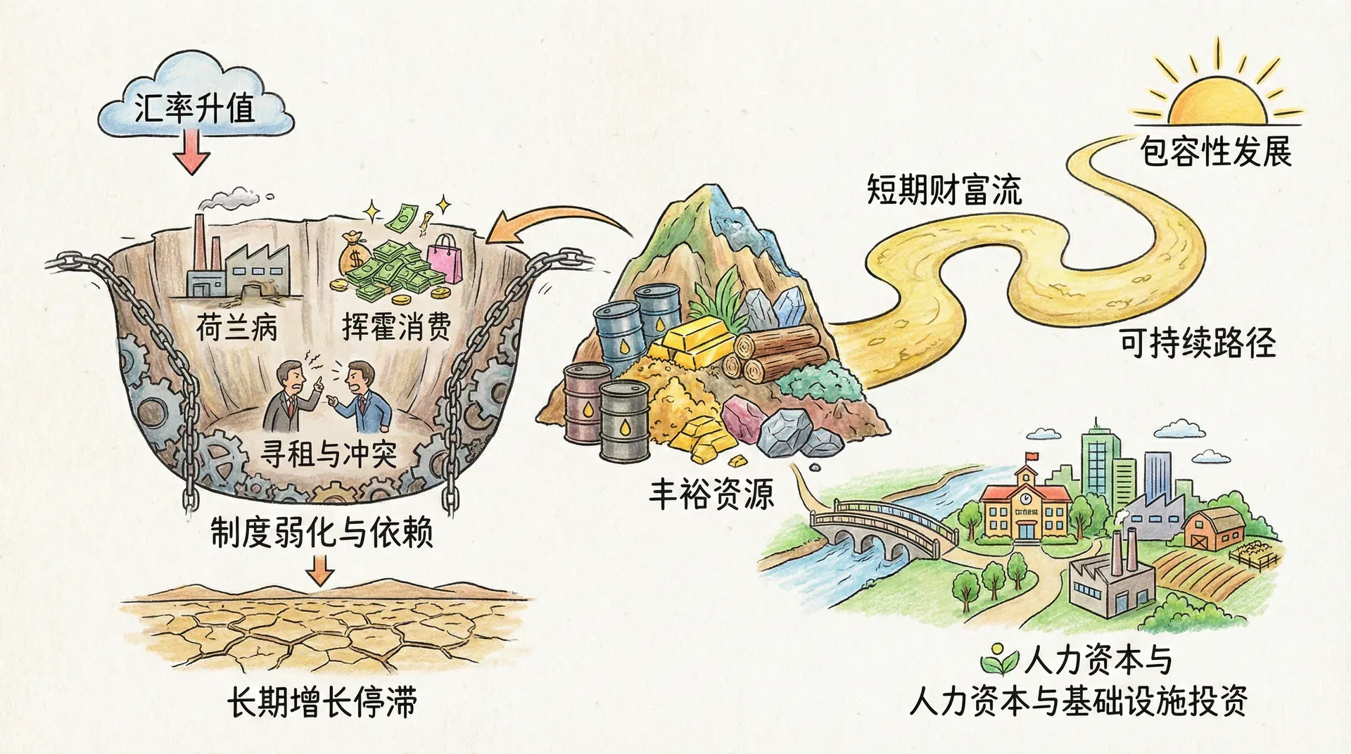 资源禀赋优势并不天然导致繁荣,关键在于拥有包容而有效的制度、完善的治理能力和前瞻发展的国家战略。加强法治、完善分配制度、推动多元经济和教育创新投入,是破解资源诅咒的核心路径。