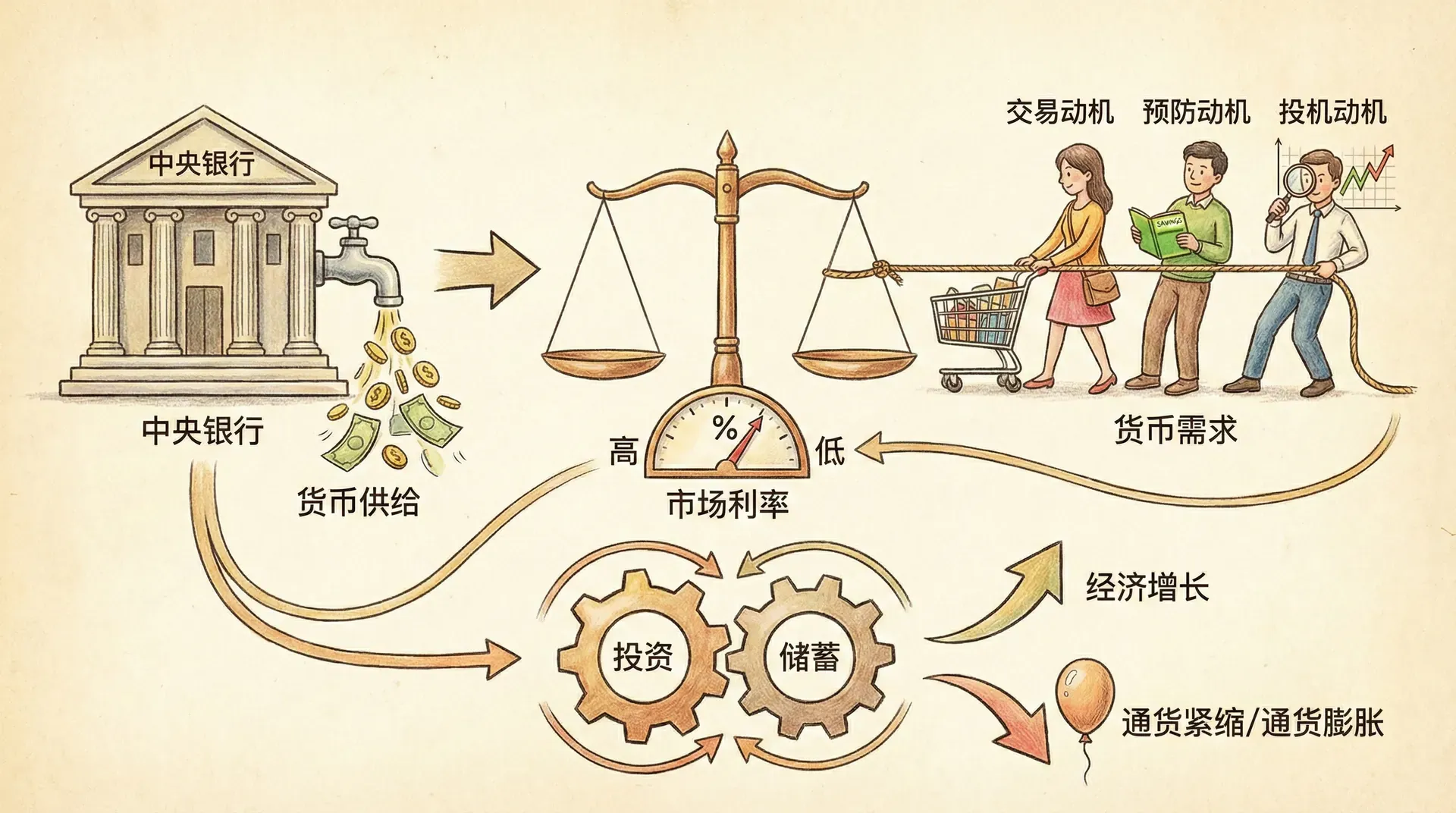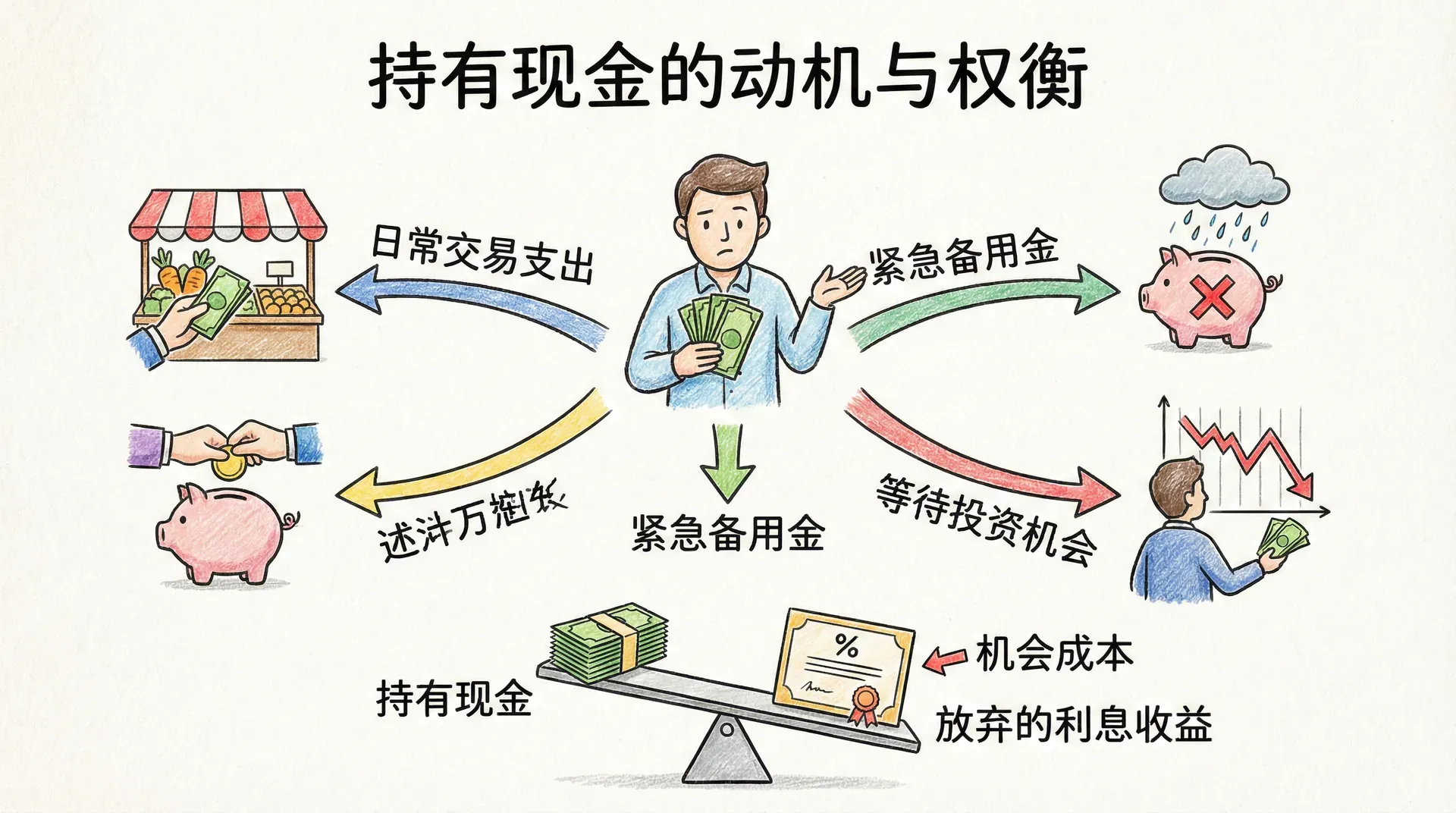 流动性偏好表达了每个人希望手中保留多少“随时可用资产”的要求。利率,本质上是你放弃这部分资产流动性的“补偿”。也就是说,利率是你愿意把钱从手中“借出去”、暂时放弃随时支用权利时应得到的回报。