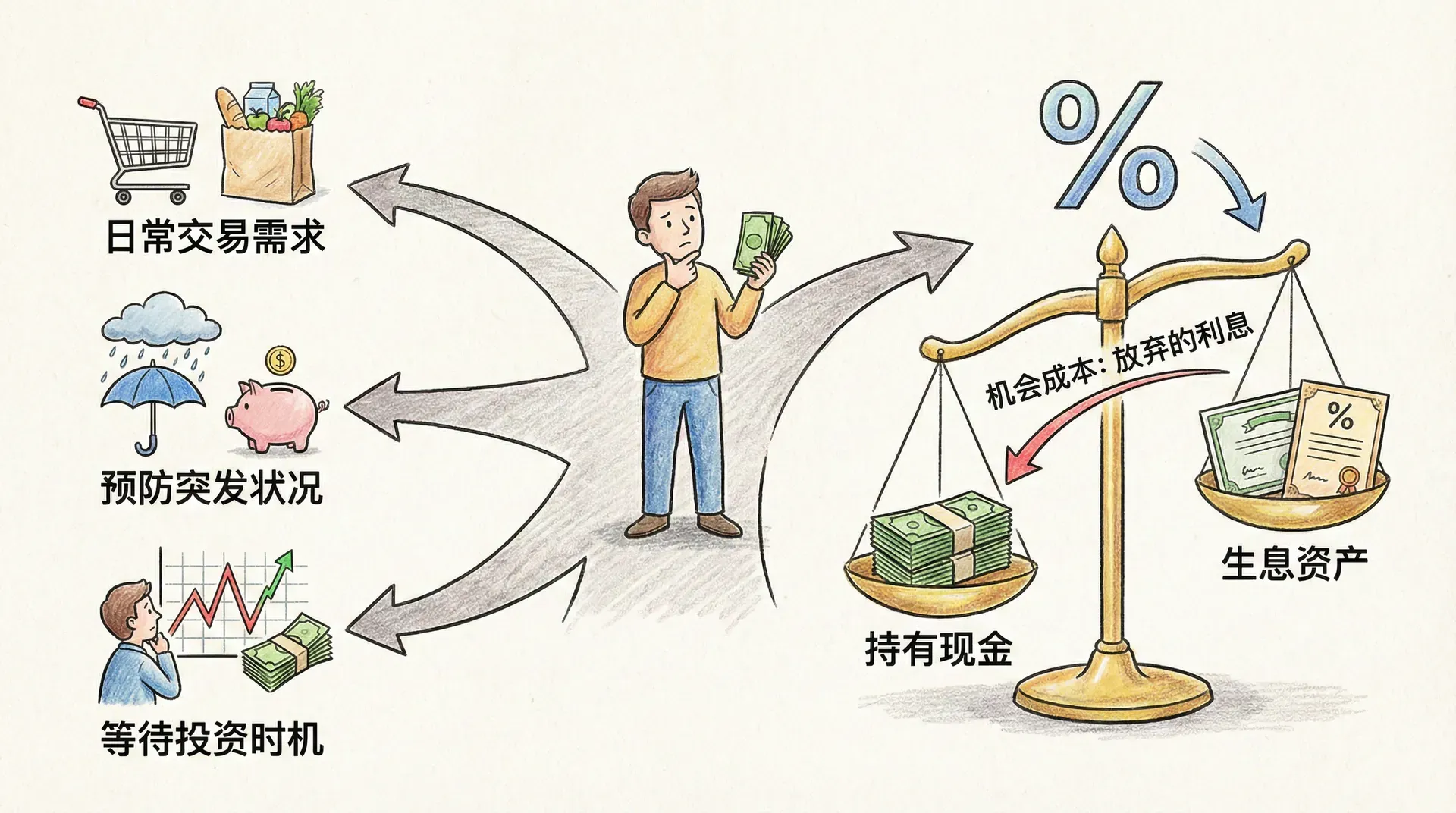 流动性偏好是一种解释货币需求行为的理论基础,它关注人们为何愿意在可选资产中偏好持有货币。不同于传统将货币视为纯粹交易媒介或仅与收入正相关的解释,流动性偏好理论更强调个体在面对未来不确定性和金融市场波动时,对于资产安全性、变现速度和投资弹性的考量。换句话说,货币因此不仅承载交易功能,更成为应对风险和把握投资机会的重要储备。