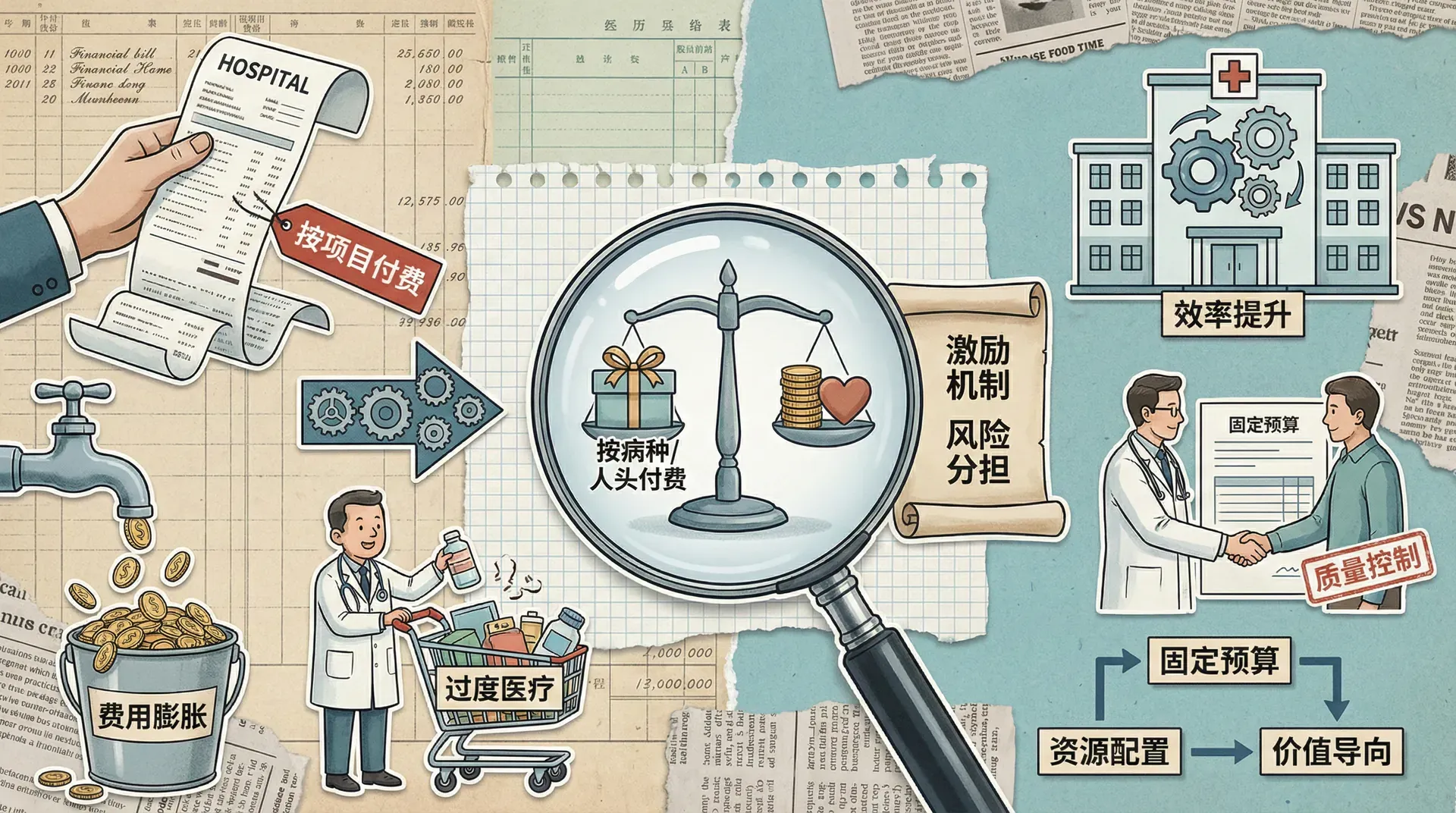 我国医保初期主要以按项目付费(FFS,Fee For Service) 为主:每一项服务、检查或药品均据实收费。这使医院有激励“多服务、多检查”,造成医疗费用持续攀升、医保基金压力大,患者“看病贵”问题难解。