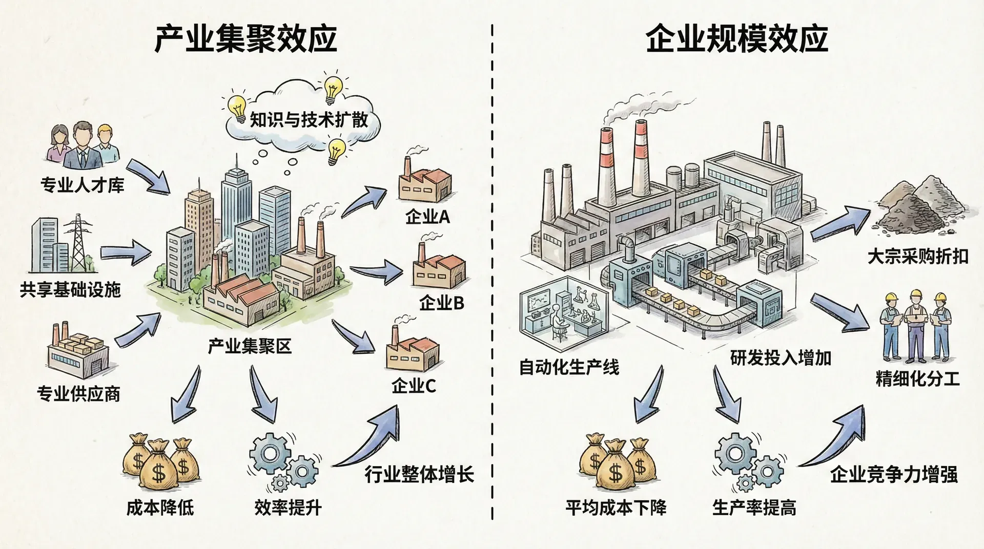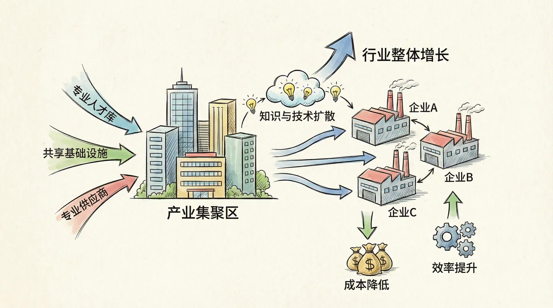 这种理论为政府保护和培育新兴(幼稚)产业提供了合理性,也解释了政策支持往往偏向已有集群。中国各大城市产业集聚的案例,正是外部规模经济作用的体现。