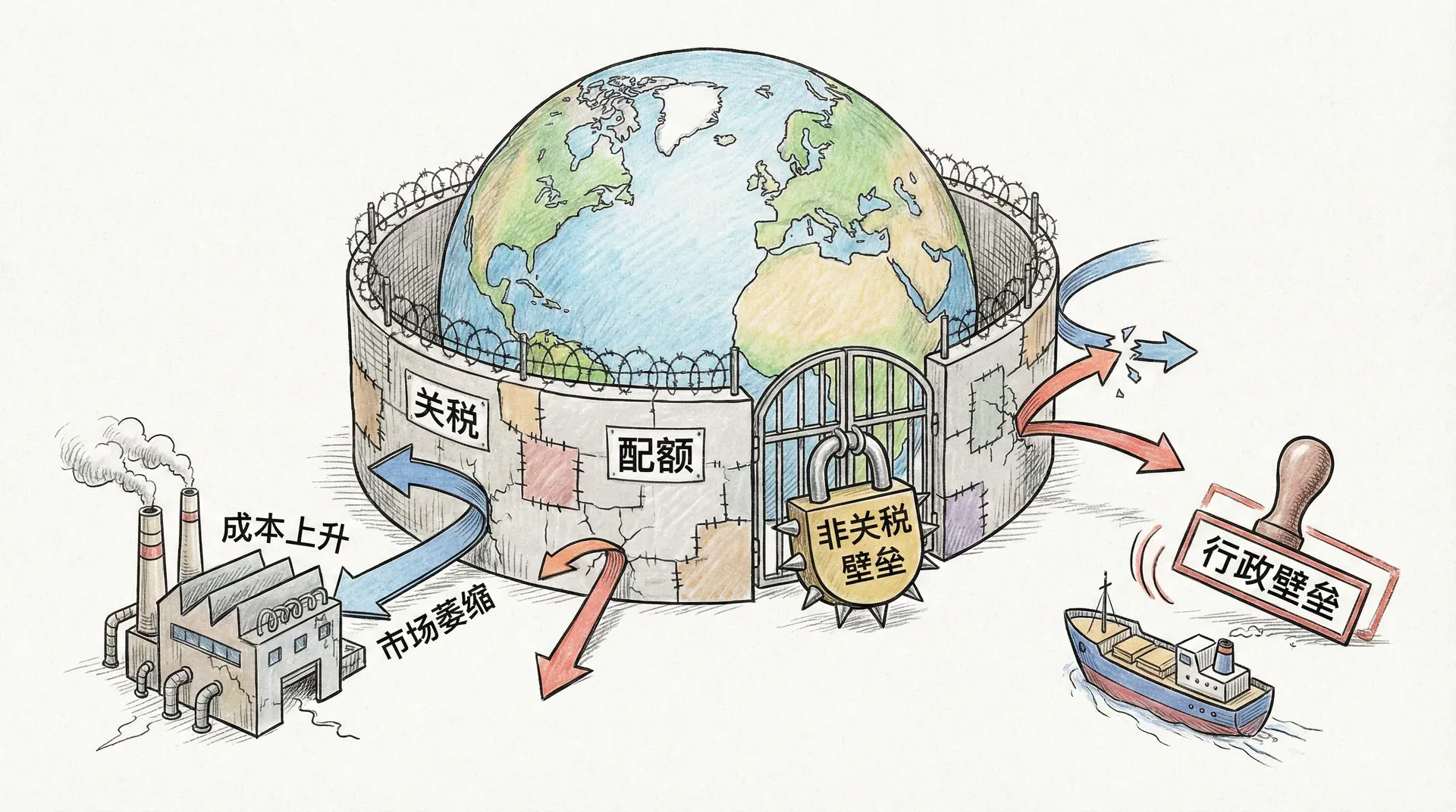 然而,这一黄金时代却因一战爆发戛然而止。两次世界大战、30年代大萧条和高筑的关税壁垒让全球贸易陷入数十年低谷,直至20世纪70年代复苏。