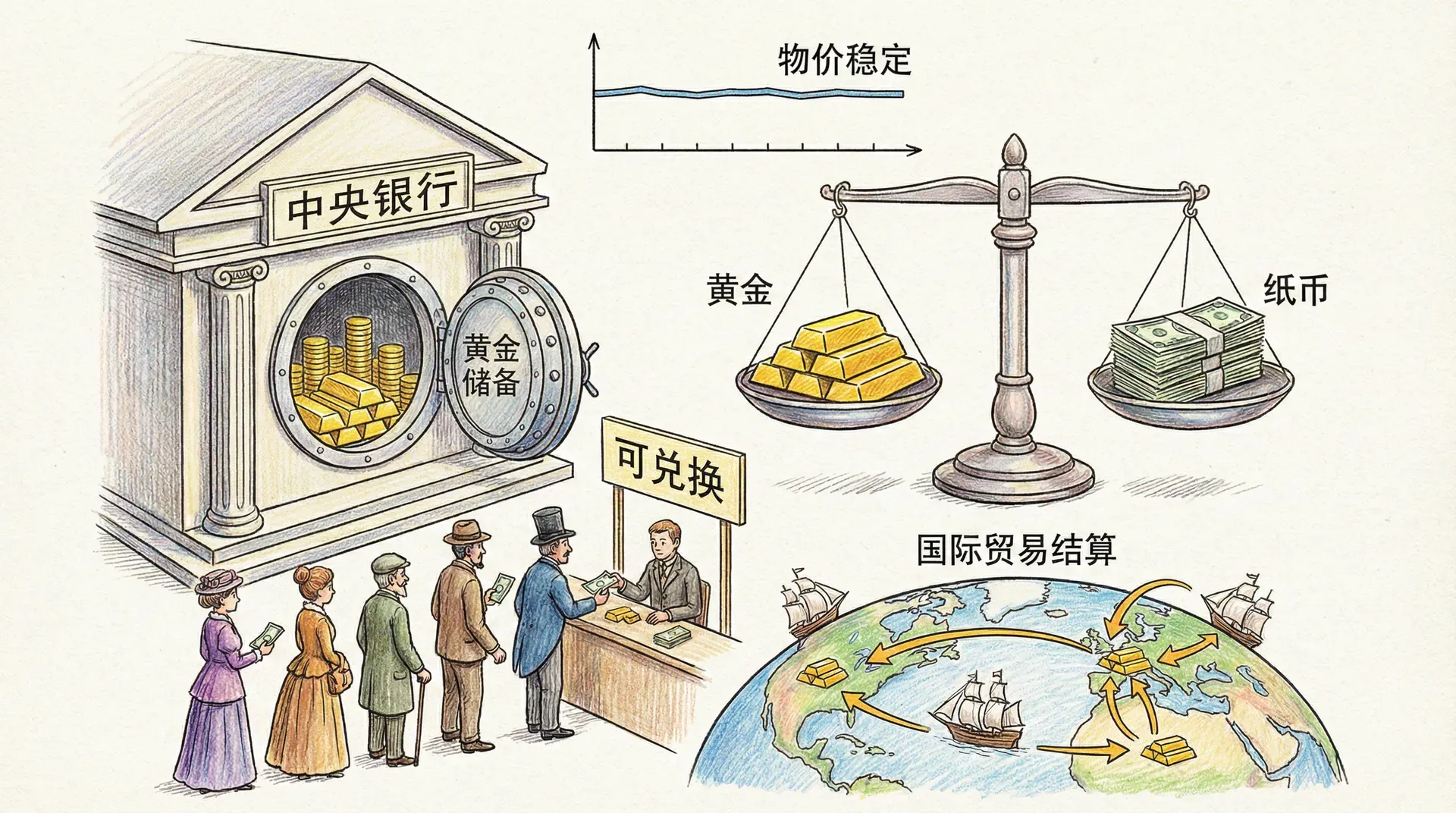金本位制作为人类经济史上第一个全球性货币体系,具有高度的汇率可预测性和国际流通性。在这一体系下,各国货币以固定汇率与黄金挂钩,黄金储备决定了货币发行量。