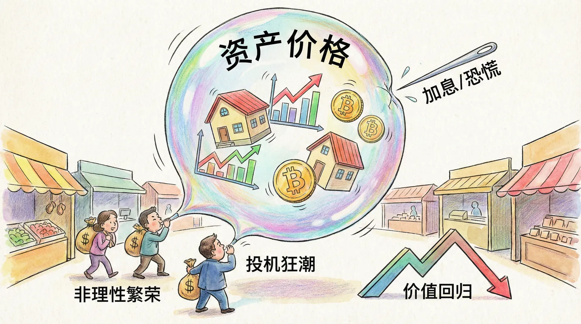 案例:20世纪90年代末日本房地产泡沫、2000年互联网泡沫、2008年美国次贷危机等,均体现了泡沫膨胀和破裂阶段的典型特征。