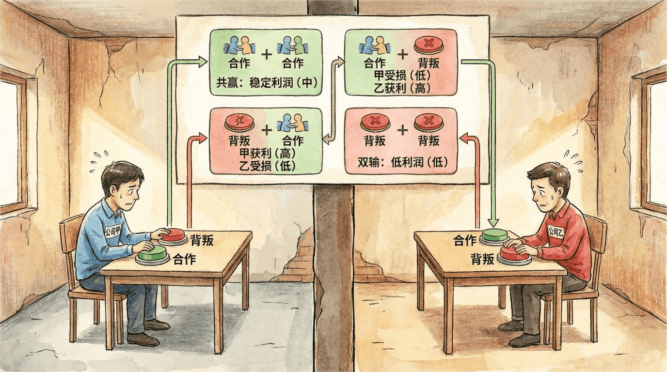 囚徒困境的核心在于,理性自利的选择导致双方处境恶化,集体利益无法最大化。如果有外部机制协调或可建立信任,双方合作则能获得更好的结果。
