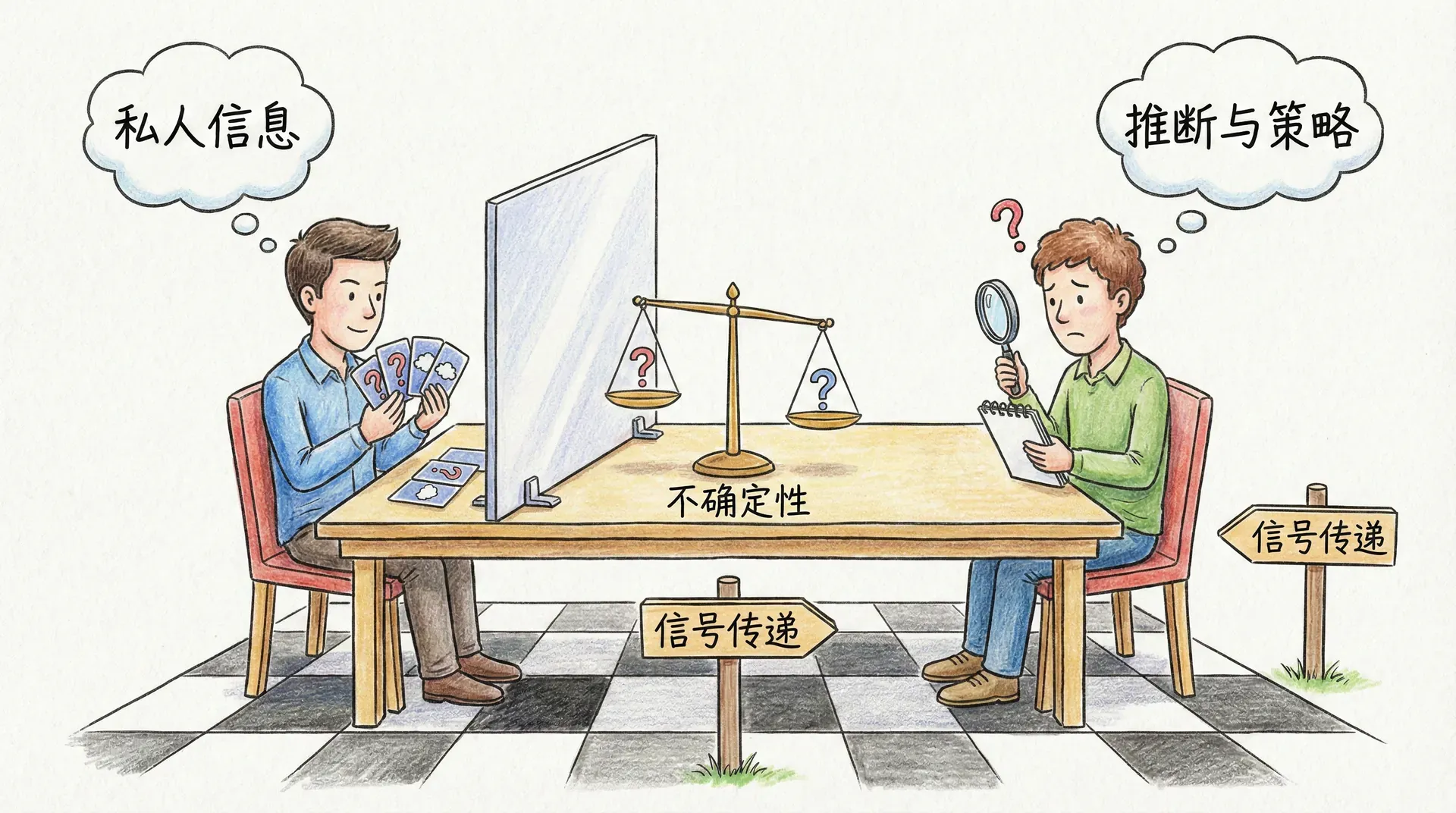 当我们进入更加复杂的现实世界,会发现很多“牌桌上的信息”并不透明。传统博弈论一般假定所有参与人都清楚彼此的收益函数和策略空间,但实际博弈往往充满了不确定性:有的玩家隐藏自己的偏好,有的环境下收益结构本身不透明,或者各种类型的参与人混杂共存。例如,拍卖场景中,每个竞拍人真实的出价意图外人难以得知,金融市场不同参与人的风险偏好也是高度保密的。
