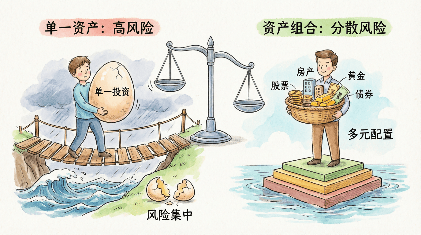 这里 是每个资产的权重, 为资产 与资产 回报率的协方差。如果资产间高度负相关,组合波动性可显著下降。