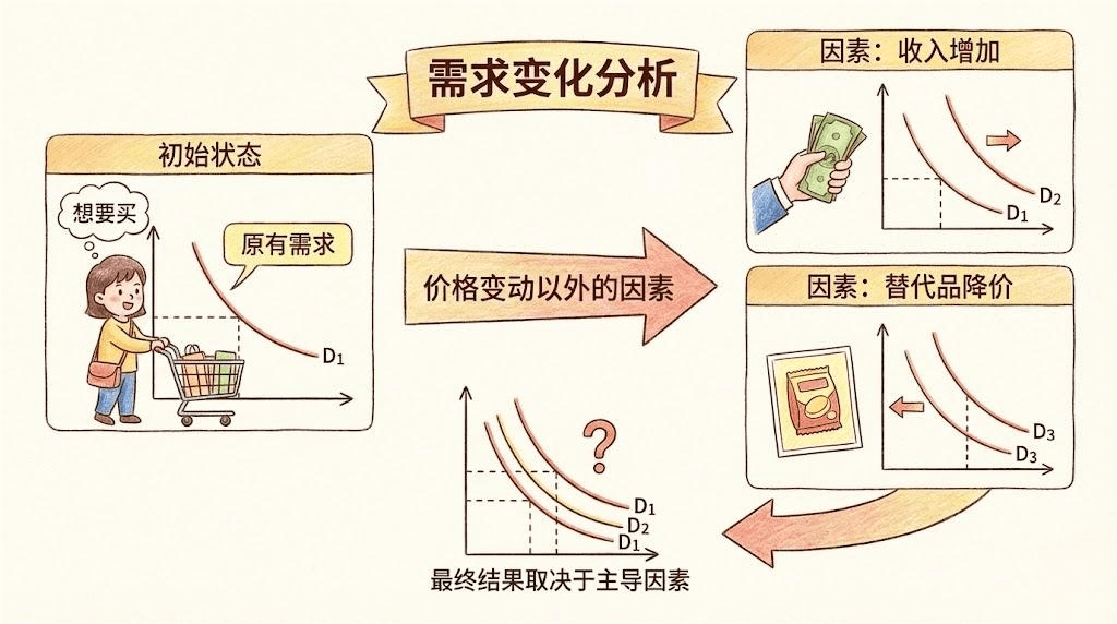实际上,某些情形下(如吉芬品)收入效应甚至可能大于替代效应,导致整体需求“反常”波动。