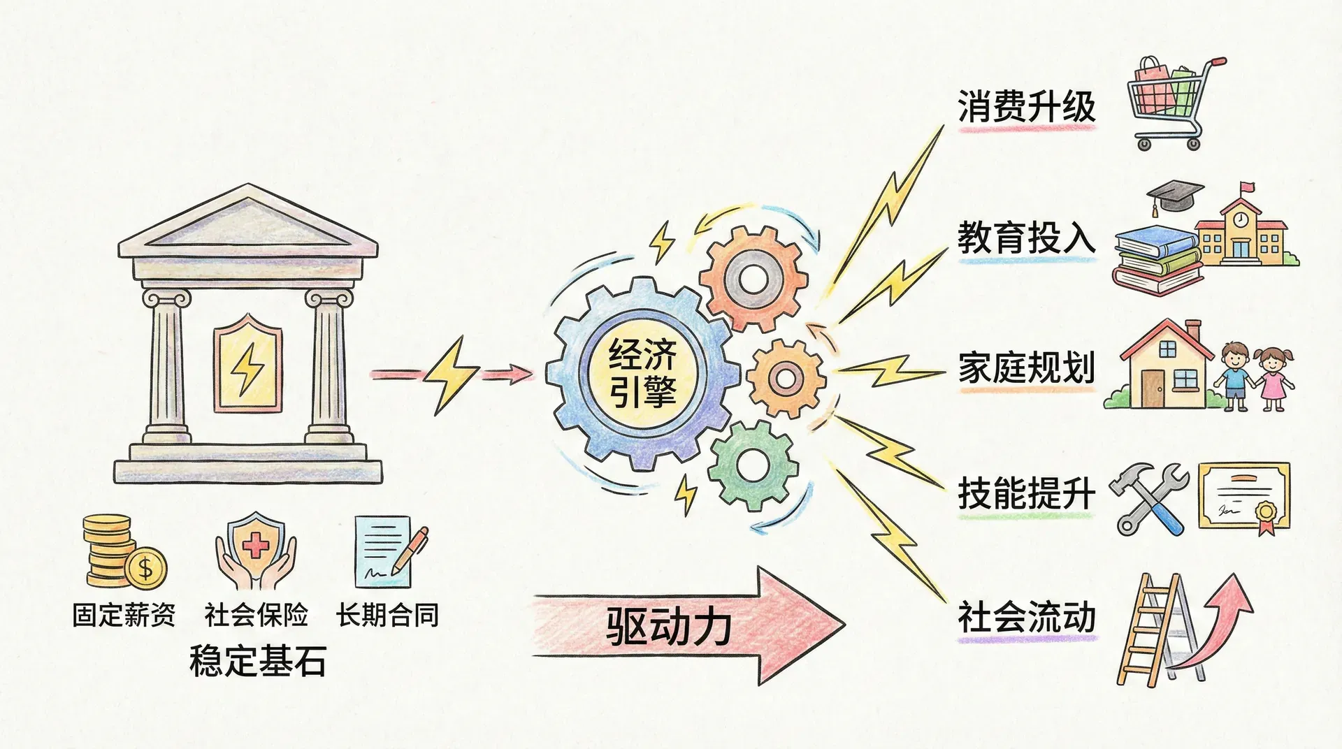 创造更多的“好工作”——尤其是抱有职业发展前景、稳定社保、可持续成长空间的岗位,才是经济持续健康升级的核心。诚然,好工作成本高、不易普及,但只要能推动广大低收入家庭子女改变生活轨迹,即使总量有限,社会整体回报依然巨大。