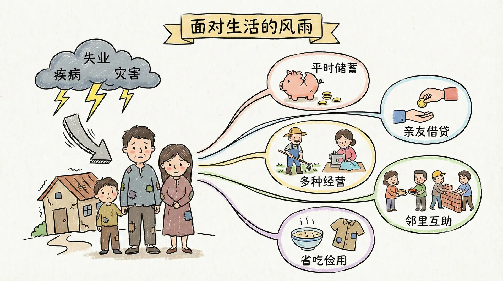 在复杂且风险高发的社会环境下,穷人采取了多种策略来规避灾难性打击。这些措施虽然未必能带来高额回报,但对于保障家庭生计和维持基本安全起到了关键作用。以下结合中国农村的案例予以阐述,适合用部分表格和更多实例加以说明。