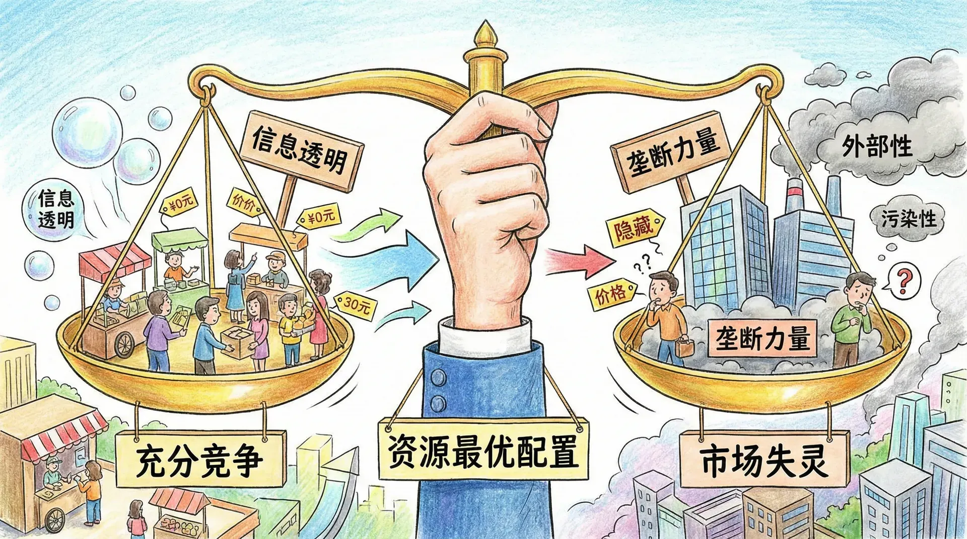 理想市场中的“看不见的手”可以高效引导资源流通,但现实世界需要政府适度干预,以弥补市场自身无法解决的问题。