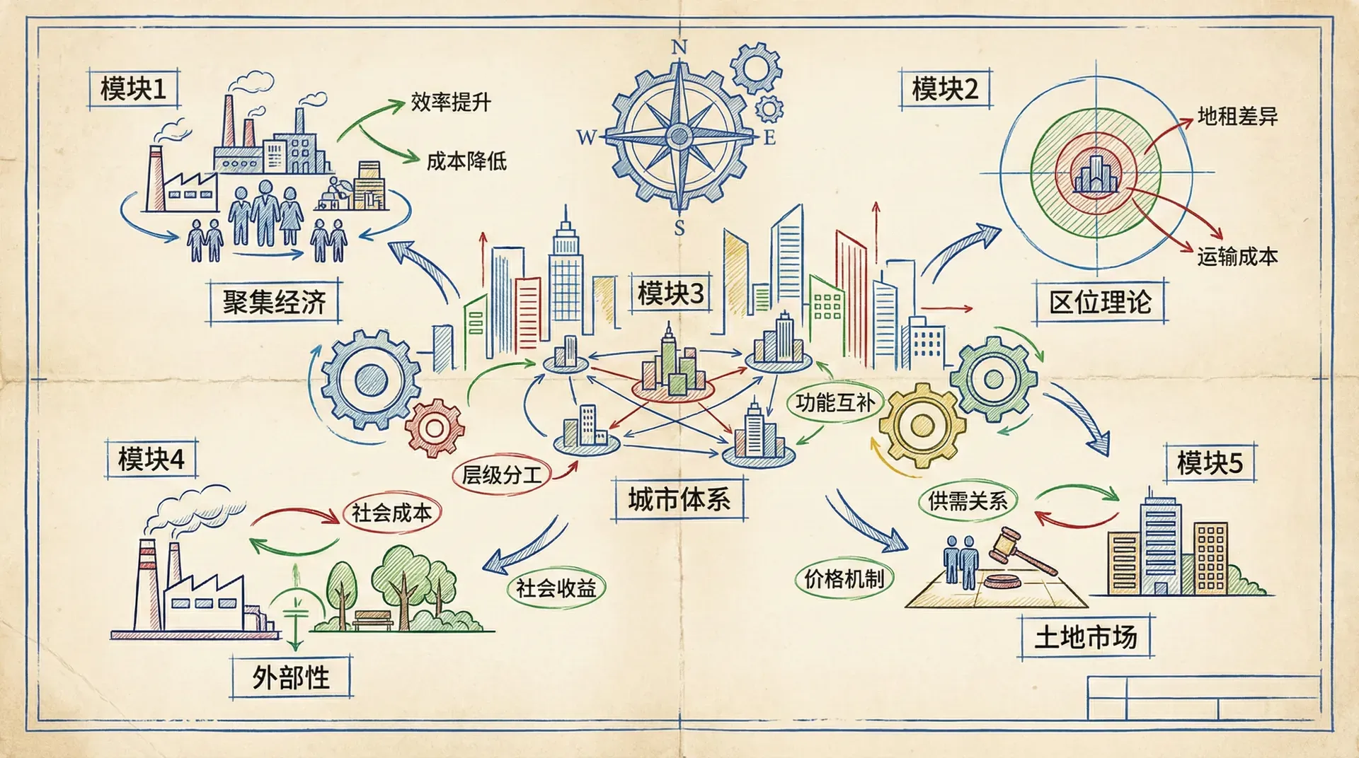 城市经济学的五大基本原理揭示了城市空间经济现象的内在逻辑。这些原理不仅解释了城市为什么会存在,还帮助我们理解城市内部的复杂经济活动是如何组织的。