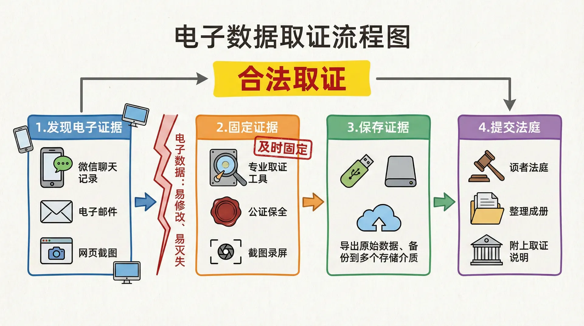 电子数据的收集必须符合法律规定,不能通过侵入他人计算机系统、窃取他人账号密码等非法方式获取。通过非法手段取得的电子数据,可能会被法院作为非法证据予以排除。