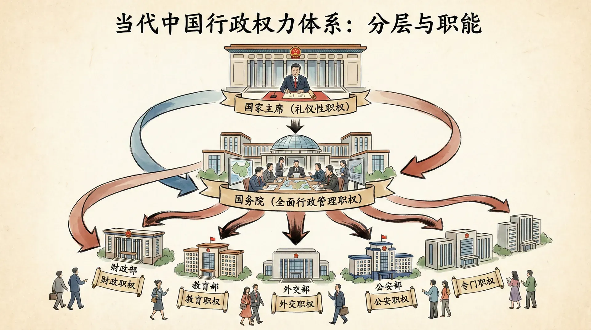 当代中国行政权力体系呈现出层次分明、职责清晰的特点。从国家主席的礼仪性职权,到国务院的全面行政管理职权,再到各部委的专门职权,形成了完整的行政权力运行体系。理解这个体系的结构和运作方式,对于把握中国国家治理的特点具有重要意义。