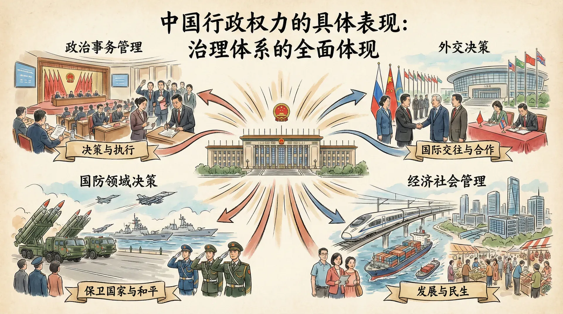 在现代国家治理体系中,行政权力是实现国家职能、维护社会秩序和推进经济社会发展的重要力量。中国的行政权不仅决定了国家政策的落实与社会管理的方式,更深刻影响着公民的生活和权利保障。