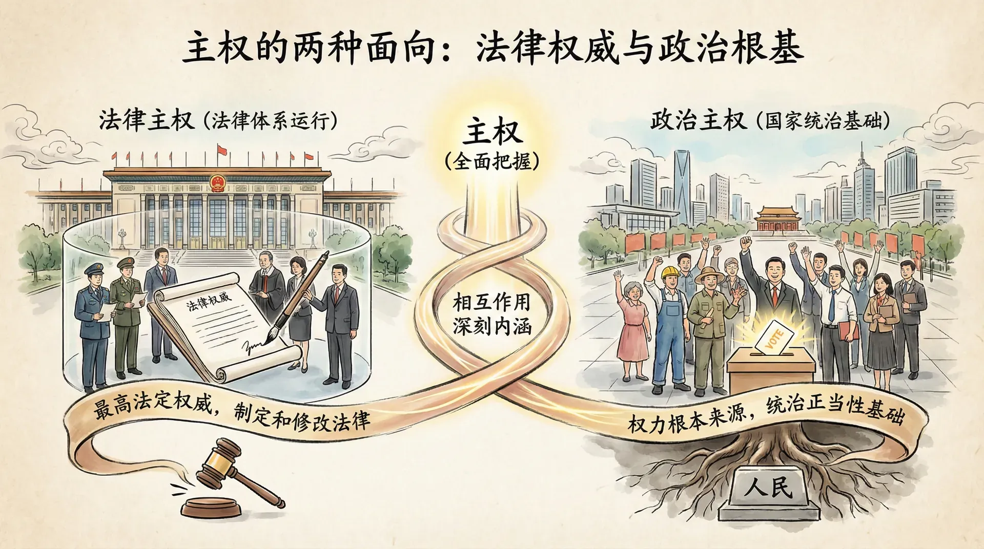 要深入理解“主权”这一概念,首先需要把握它所包含的两个基本维度:法律主权和政治主权。所谓法律主权,是指在国家法律体系中,谁拥有最高的法定权威,谁能够最终制定和修改法律规范;而政治主权关注的则是国家权力的根本来源,即国家统治正当性的基础。虽然法律主权与政治主权常常紧密相连、相互作用,但在理论上两者却有着本质的区别。法律主权更多涉及到法律制度运行中的权力配置与权威性问题;政治主权则集中于国家权力背后的合法性基础、即“谁赋予国家统治者制定和执行法律的权力”。只有清晰区分和理解这两个维度,我们才能全面把握主权在国家治理和宪法体系中的深刻内涵。