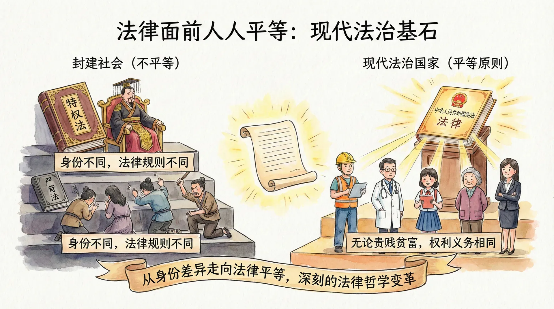 “法律面前人人平等”看似简单,实则包含着深刻的法律哲学思想。在封建社会,法律往往为统治阶级服务,刑不上大夫,礼不下庶人,不同身份的人适用不同的法律规则。现代法治国家的平等原则要求无论贵贱贫富,每个人在法律面前都享有相同的权利,承担相同的义务。