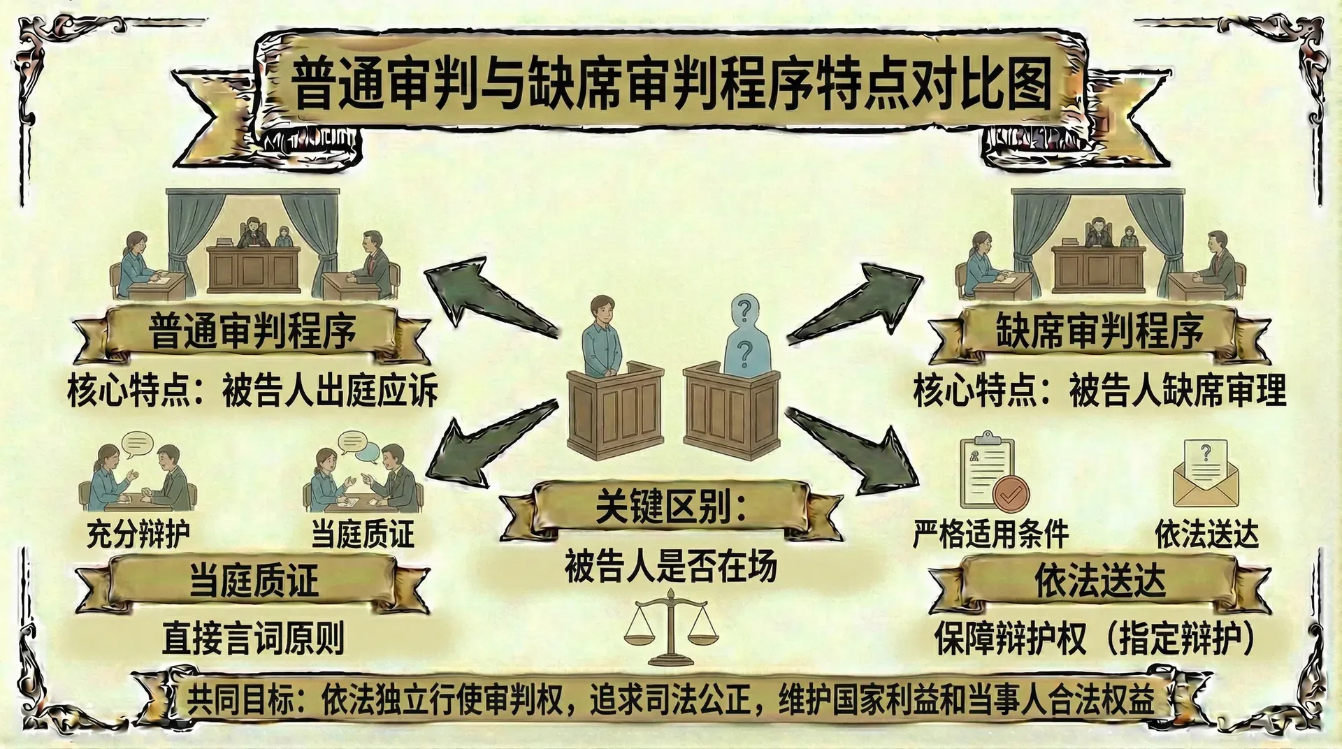 缺席审判虽然被告人不在场,但并不意味着可以随意剥夺被告人的诉讼权利。相反,缺席审判对程序保障的要求更加严格,以弥补被告人不在场可能导致的权利损害。