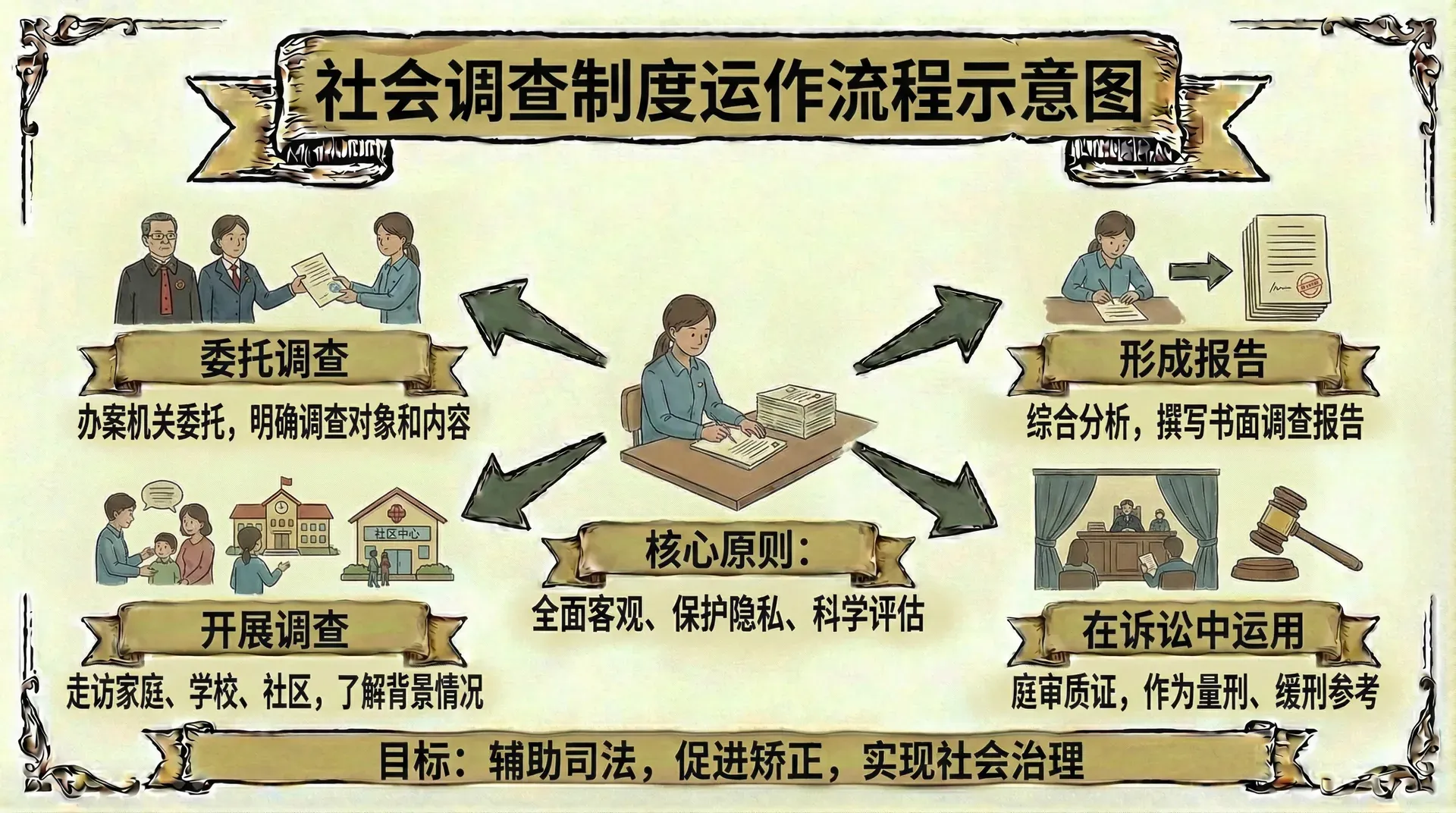 社会调查报告在诉讼中具有重要作用。在侦查阶段,社会调查报告可以帮助侦查人员全面了解未成年犯罪嫌疑人,合理决定是否采取强制措施以及采取何种强制措施。在审查起诉阶段,检察机关可以根据社会调查报告决定是否起诉、是否适用附条件不起诉。在审判阶段,社会调查报告是法院决定是否从轻、减轻或者免除处罚的重要依据,也是确定具体刑罚种类和幅度的参考因素。
