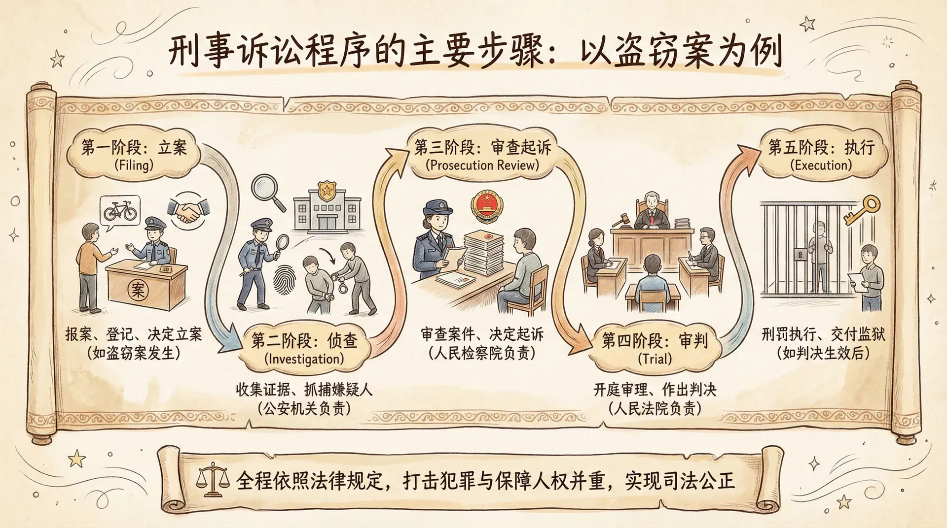通过严密的程序安排,刑事诉讼程序确保了追究犯罪责任的公平性和正当性,有效防止权力滥用与冤假错案的发生,是现代法治国家不可或缺的制度基石。