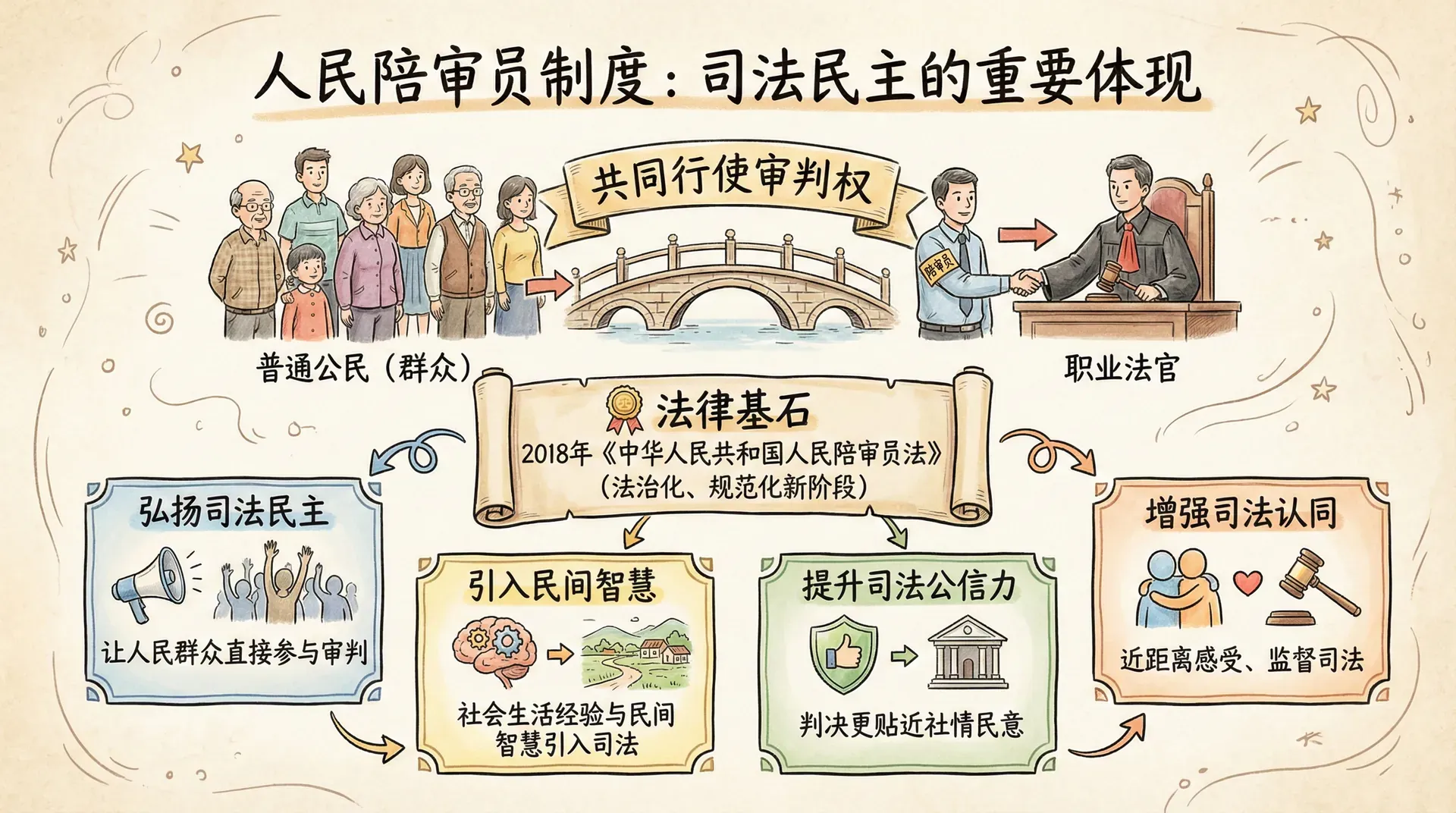 2018年,全国人大常委会通过了《中华人民共和国人民陪审员法》,这是我国历史上第一部关于人民陪审员的专门法律,规定了人民陪审员的选任条件、参审范围、权利义务等内容,标志着人民陪审员制度进入了法治化、规范化的新阶段。