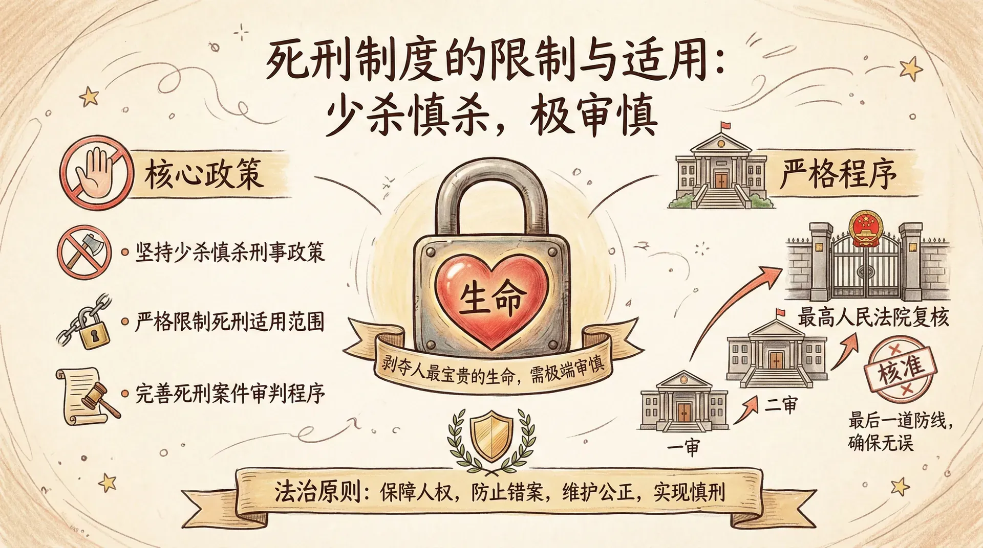死刑是最严厉的刑罚,剥夺的是人最宝贵的生命。正因如此,我国对死刑的适用采取极为审慎的态度,坚持少杀慎杀的刑事政策,严格限制死刑的适用范围,完善死刑案件的审判程序。