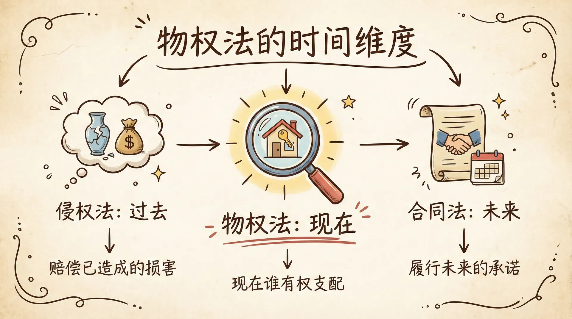 这种区分只是相对的。物权的取得往往源于过去的行为,物权的变动也指向未来的安排。但物权法的核心关切,始终是确定“现在谁有权”。
