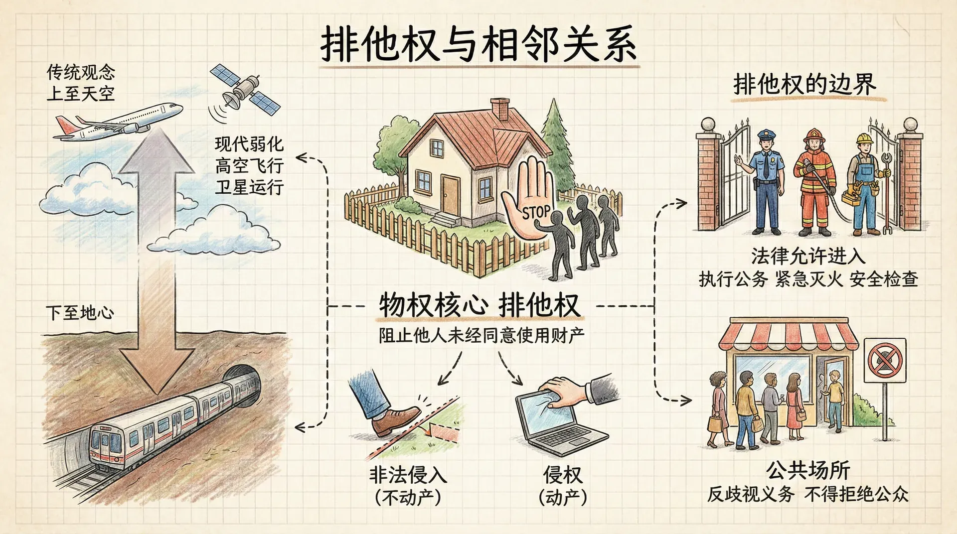 物权法不是在隔离人与人的关系,而是在为人们的共同生活制定规则。排他权的边界,恰恰是相邻关系开始的地方。
