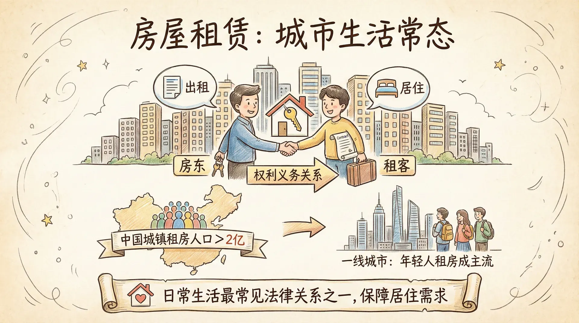 租房居住是城市生活中极为普遍的现象。根据统计数据,中国城镇租房人口已超过2亿人,尤其在一线城市,相当比例的年轻人选择租房而非买房。租赁关系涉及房东和租客双方的权利义务,是日常生活中最常见的法律关系之一。