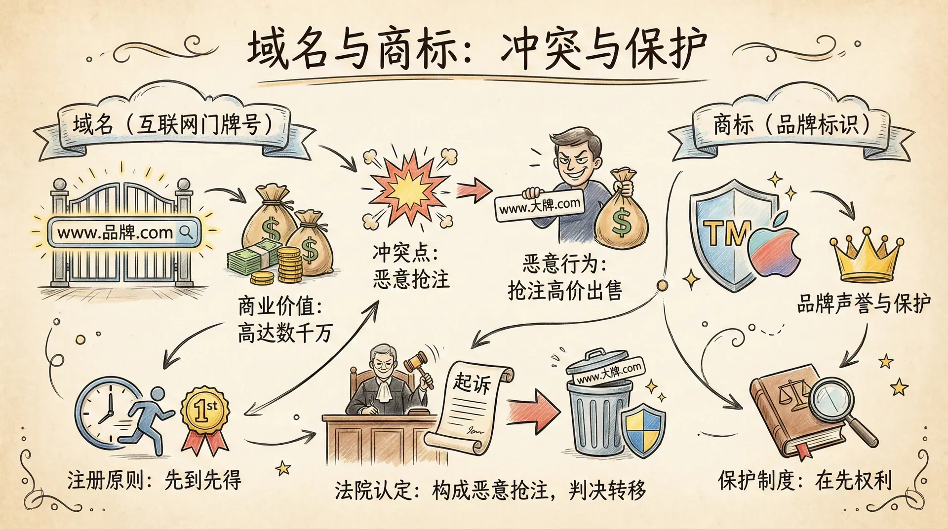 域名注册遵循“先到先得”的原则,但这与商标保护制度可能产生冲突。曾有案例显示,某自然人注册了与知名企业相关的域名,试图高价出售给相关企业。企业起诉后,法院认定这种行为构成“恶意抢注”,判决将域名转移给权利人。类似的“域名抢注”行为,在中国互联网早期发展阶段曾经频繁发生。