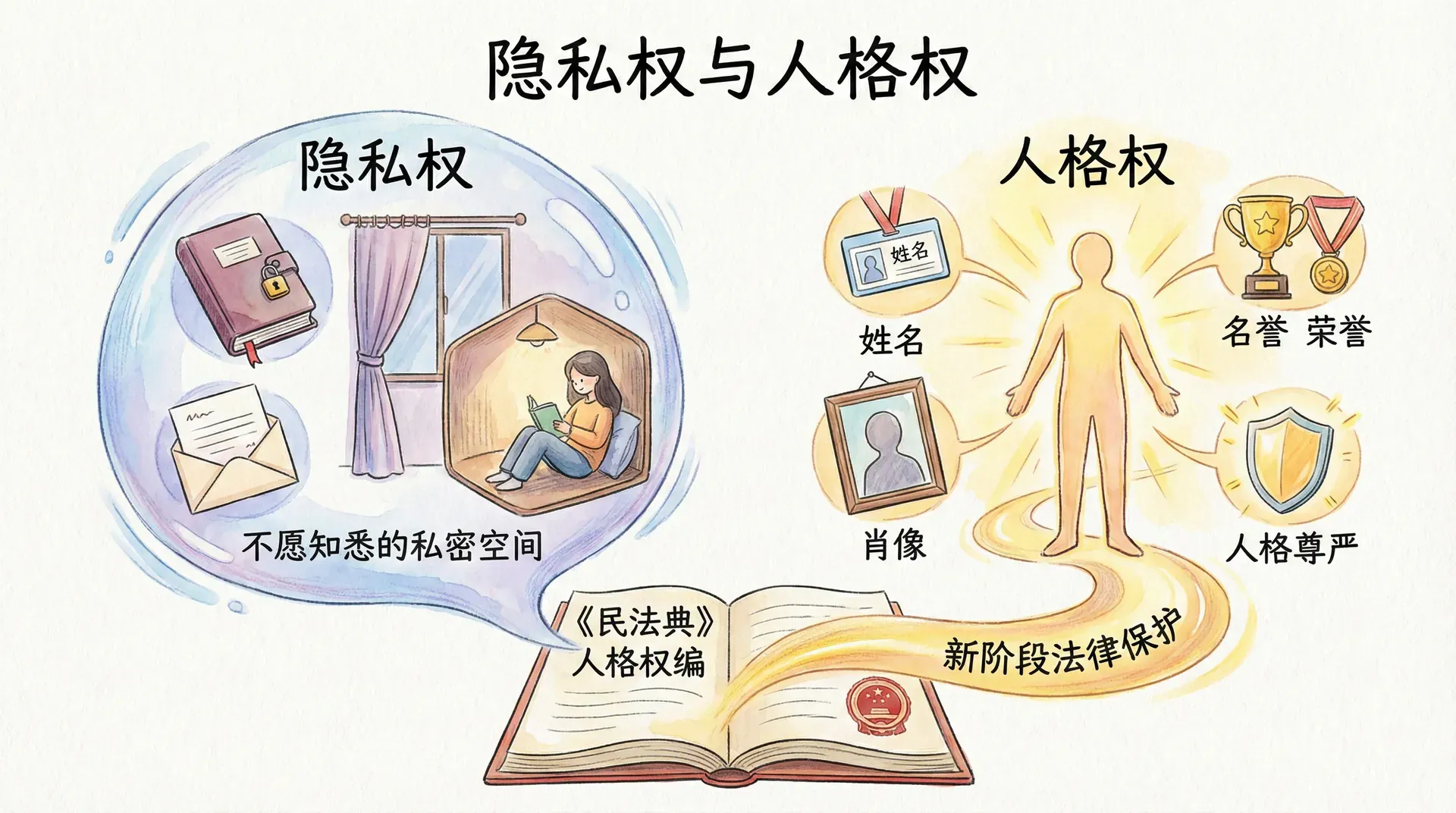 隐私是个人生活中不愿为他人知悉的私密空间,人格权则涵盖姓名、肖像、名誉、荣誉等与人格尊严密切相关的权利。《民法典》人格权编的出台,标志着中国对这一领域的法律保护进入新阶段。