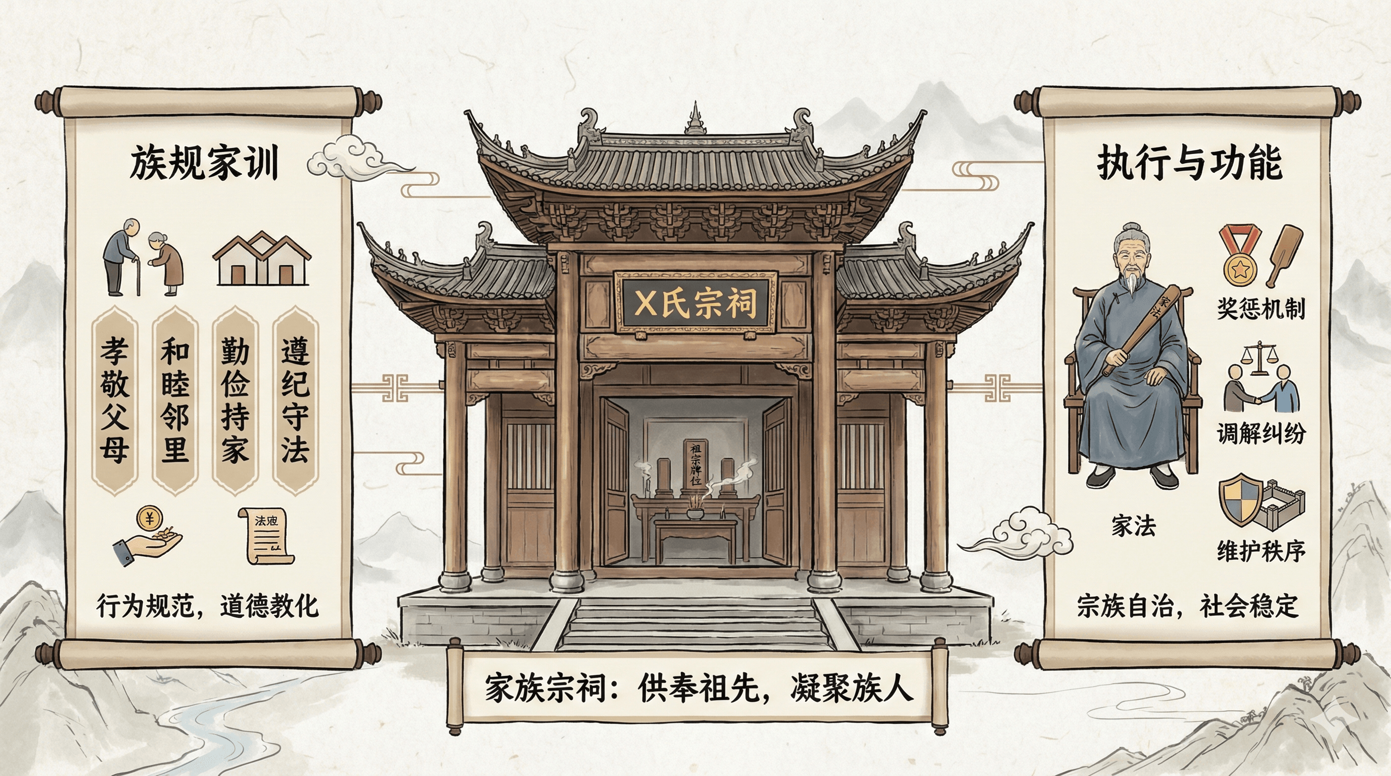 家族责任制度的运作离不开宗族组织的支持。传统中国社会中,宗族不仅是血缘共同体,也是重要的社会治理单位。每个宗族都有自己的族规家法,这些规则的约束力有时甚至超过官府律法。当宗族内的青少年实施违法行为,族长或家长首先会根据族规进行处理,轻则训诫、罚跪,重则杖责、禁闭。只有在家族内部无法处理或案情特别严重时,才会交由官府处理。