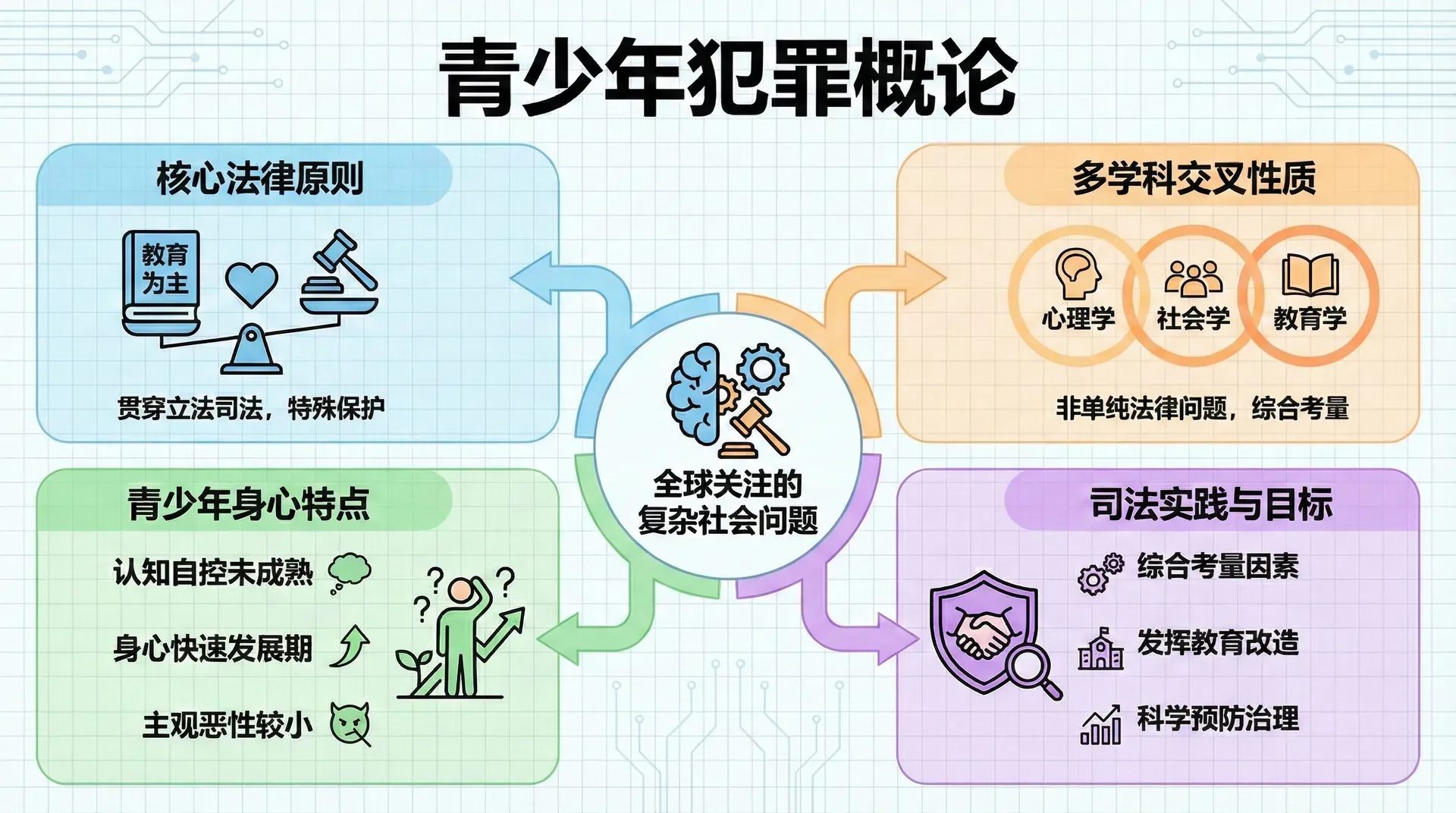 青少年犯罪不仅仅是法律问题,而是涉及心理学、社会学、教育学等多学科交叉的复杂社会问题。青少年正处于生理和心理快速发展的特殊阶段,认知能力、判断能力和自控能力尚未完全成熟,这决定了他们实施违法犯罪行为时的主观恶性往往小于成年人。正因如此,世界各国法律体系都对青少年犯罪给予特殊关注和对待。