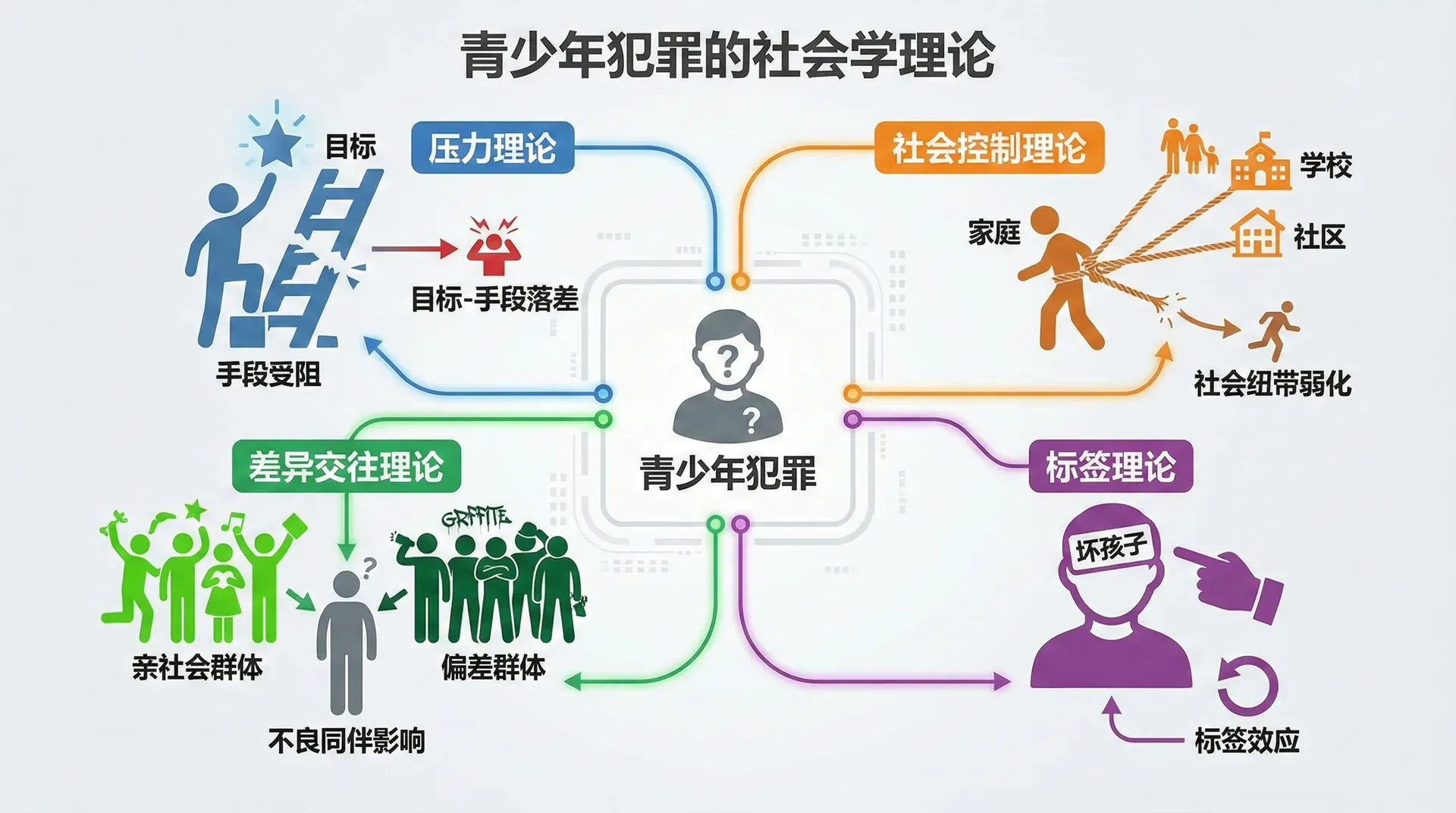 在中国当前的社会转型期,这些理论同样具有启发意义。快速的城市化进程、传统社会纽带的松动、价值观的多元化碰撞,以及社会分层的加剧,都为青少年犯罪提供了特定的社会土壤。理解这些社会学理论,不仅有助于深入把握青少年犯罪的成因,更能为预防和干预工作提供科学支撑。