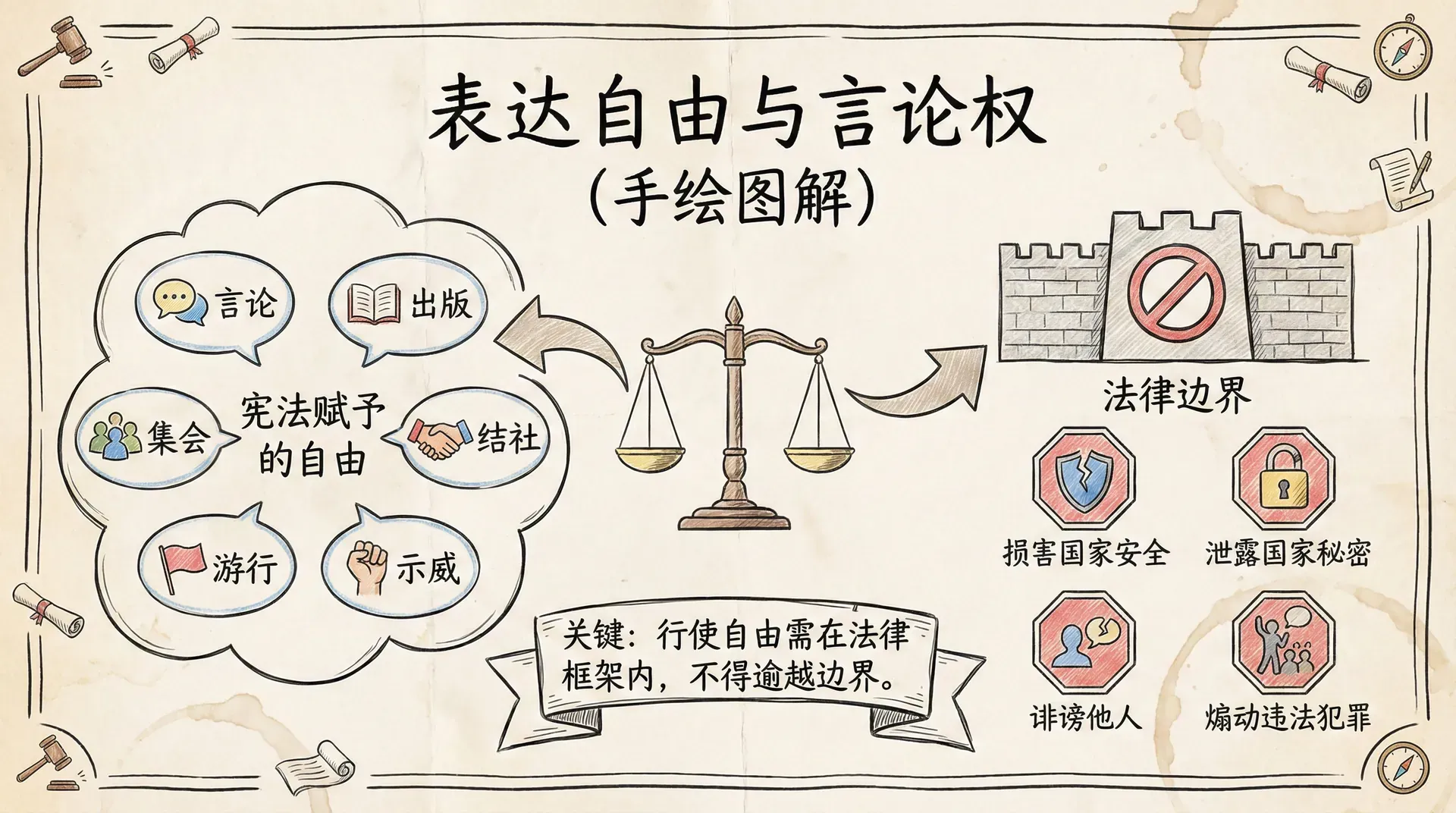 宪法赋予公民言论、出版、集会、结社、游行、示威的自由。但这些自由并非毫无边界,而是必须在法律框架内行使。言论自由的行使不能损害国家安全、不能泄露国家秘密、不能诽谤他人、不能煽动违法犯罪。