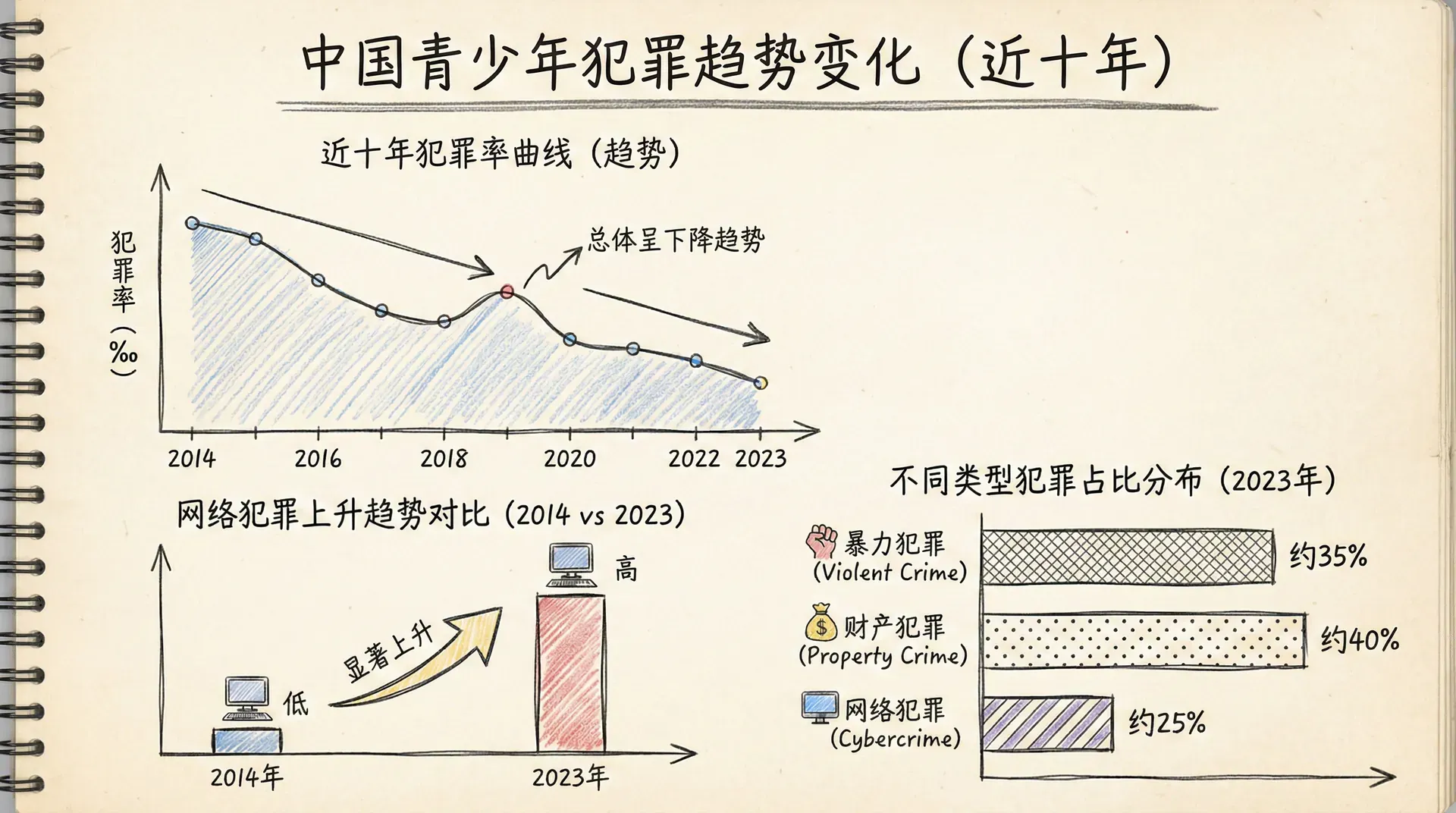 近年来,青少年犯罪问题引发社会高度关注。总体犯罪率持续下降,预防和教育工作取得成效;但低龄化、暴力化、网络化等新趋势令人担忧。几起震惊全国的恶性案件促使立法机关修订法律,司法机关调整政策,全社会重新审视青少年保护与犯罪预防工作。