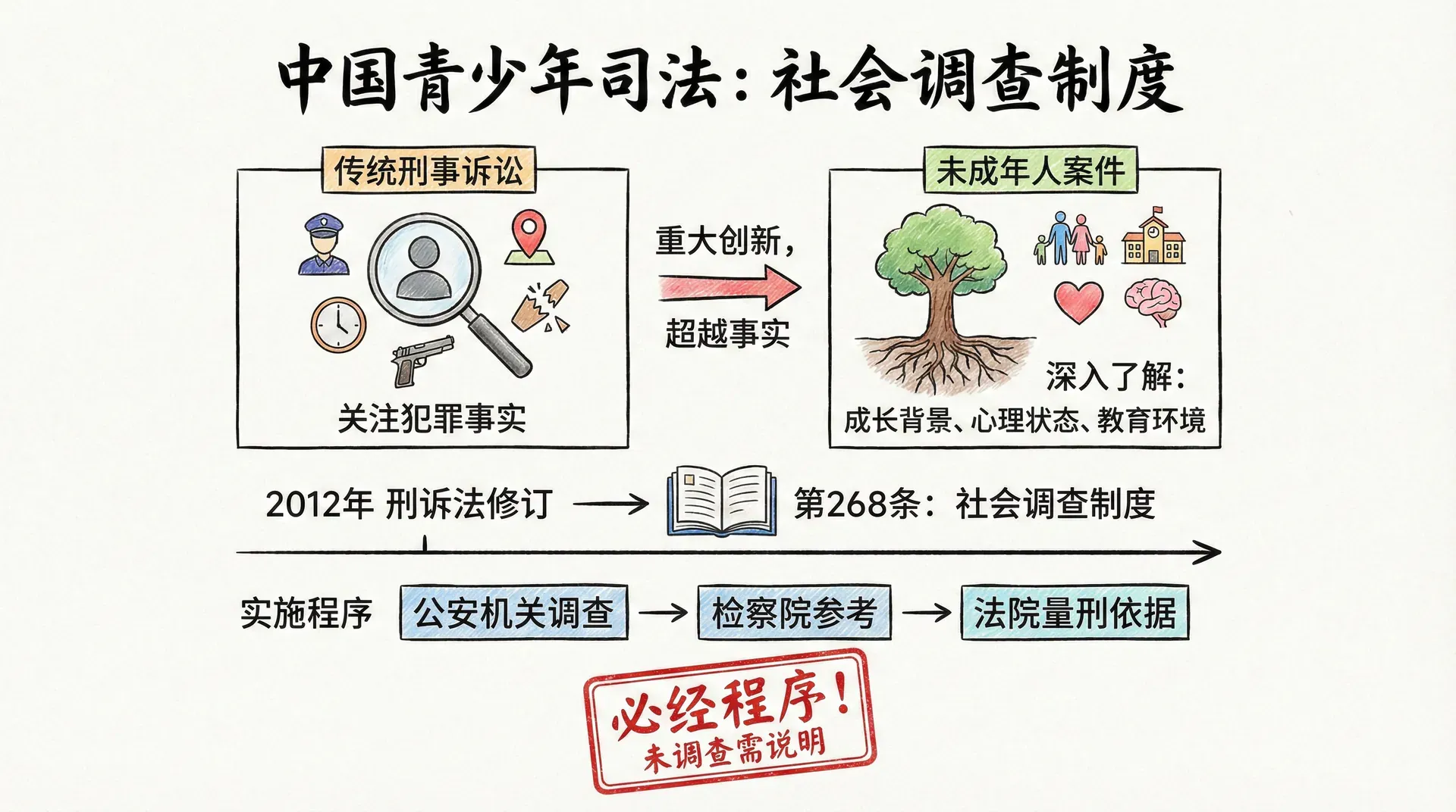 社会调查制度是中国青少年司法制度的重大创新。传统刑事诉讼只关注犯罪事实本身——谁实施了犯罪、何时何地、用什么手段、造成什么后果。未成年人刑事案件不能止步于此,还要深入了解犯罪人的成长背景、家庭环境、就学就业、社会交往、性格特征、心理状态。这些信息直接影响诉讼程序的推进和实体处理的结果。