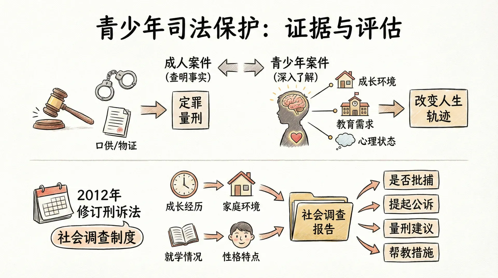 证据规则和评估制度,构成了青少年司法保护的关键环节。与成年人刑事案件不同,青少年案件不仅要查明犯罪事实,更要深入了解行为背后的成长环境、心理状态、教育需求。一份规范采集的证据,一次充分的社会调查,一个科学的风险评估,往往能够改变一个孩子的人生轨迹。