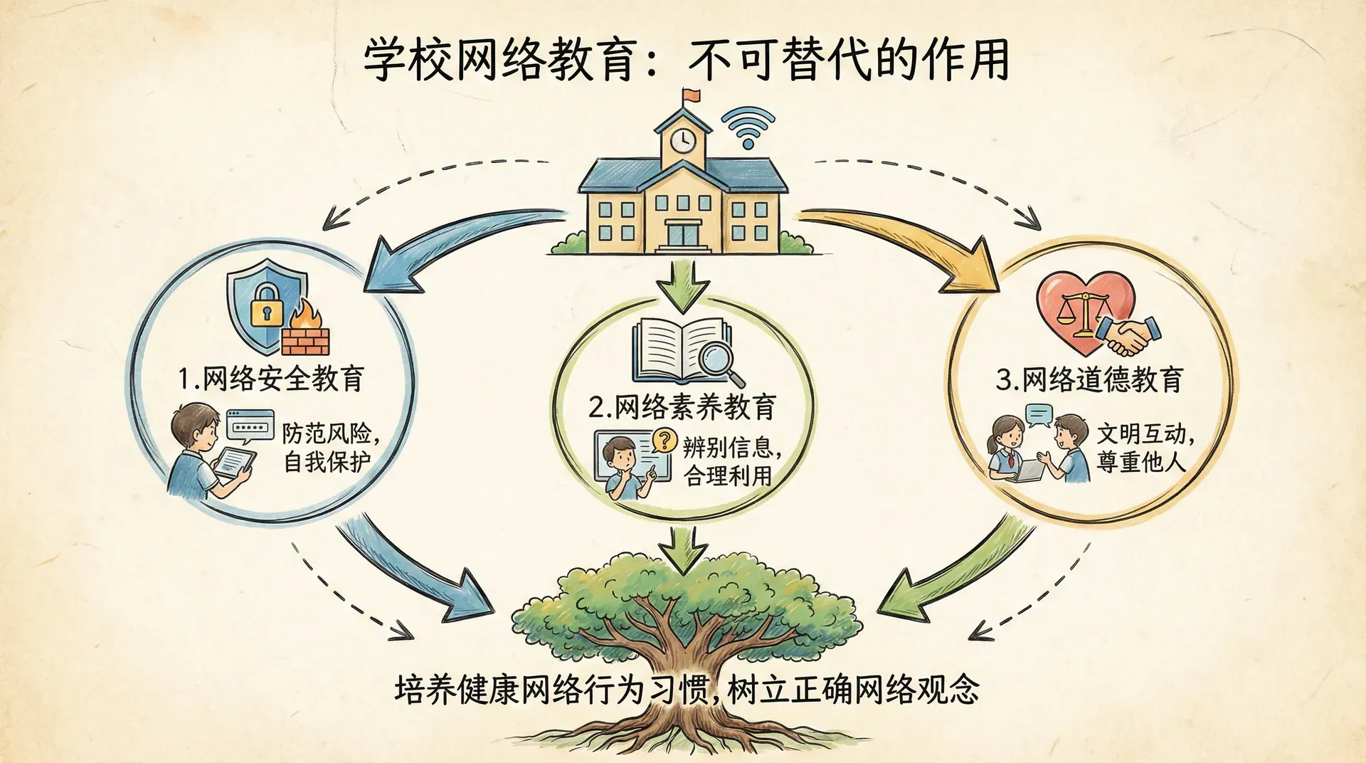 学校网络教育的目标不是让学生远离网络,而是让学生学会正确使用网络。在数字时代,完全隔绝网络既不现实也不合理。学校应当培养学生的网络素养,让他们能够在享受网络便利的同时,也能够保护自己、规范自己,成为负责任的网络公民。