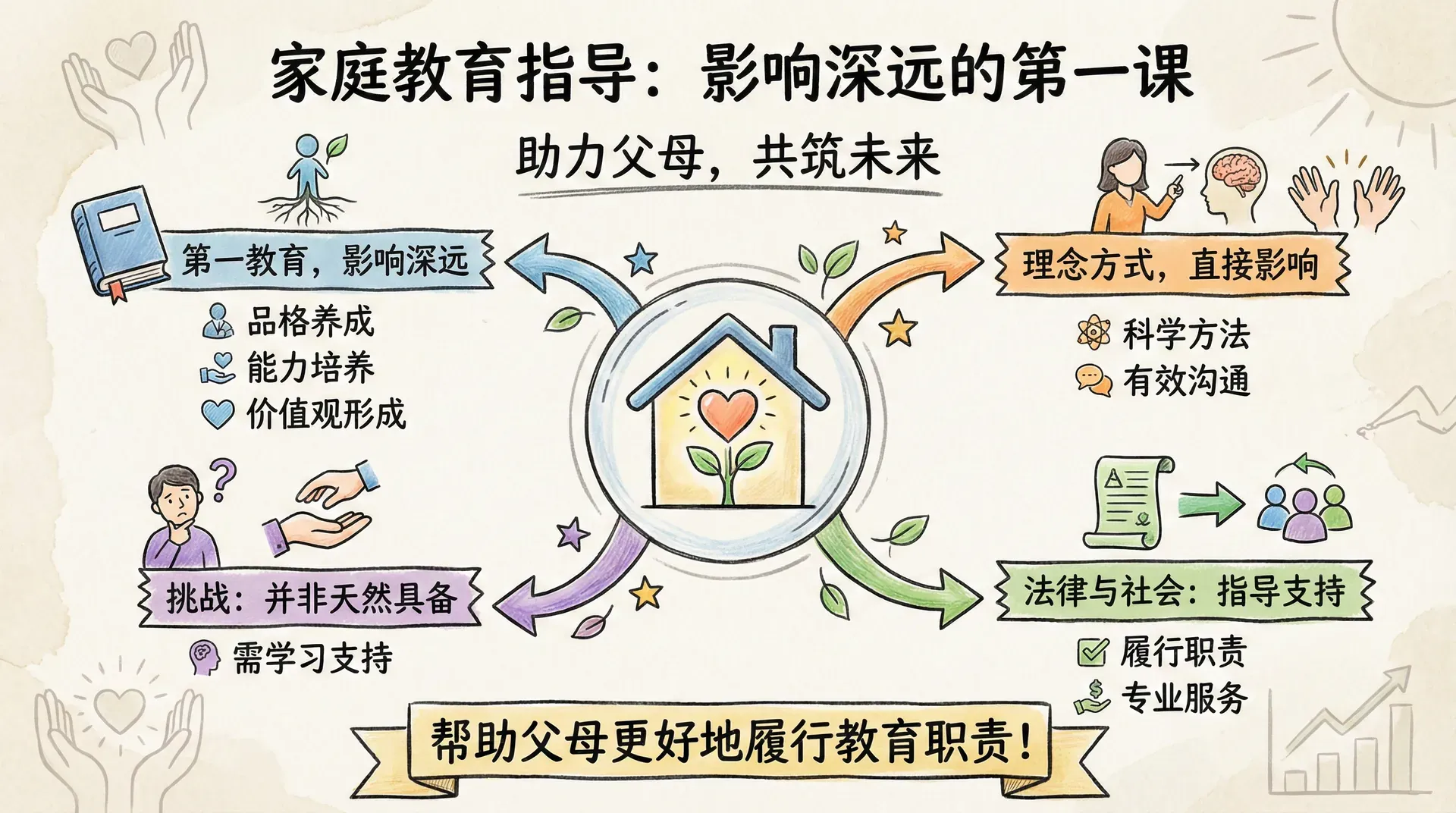 家庭教育是青少年接受的第一教育,也是影响最深远的教育。父母作为家庭教育的主要实施者,其教育理念和方式直接影响青少年的品格养成、能力培养和价值观形成。然而,并非所有父母天然具备科学的教育理念和有效的教育方法。因此,法律不仅确立父母的教育权利和义务,还要求社会为家庭教育提供指导和支持,帮助父母更好地履行教育职责。