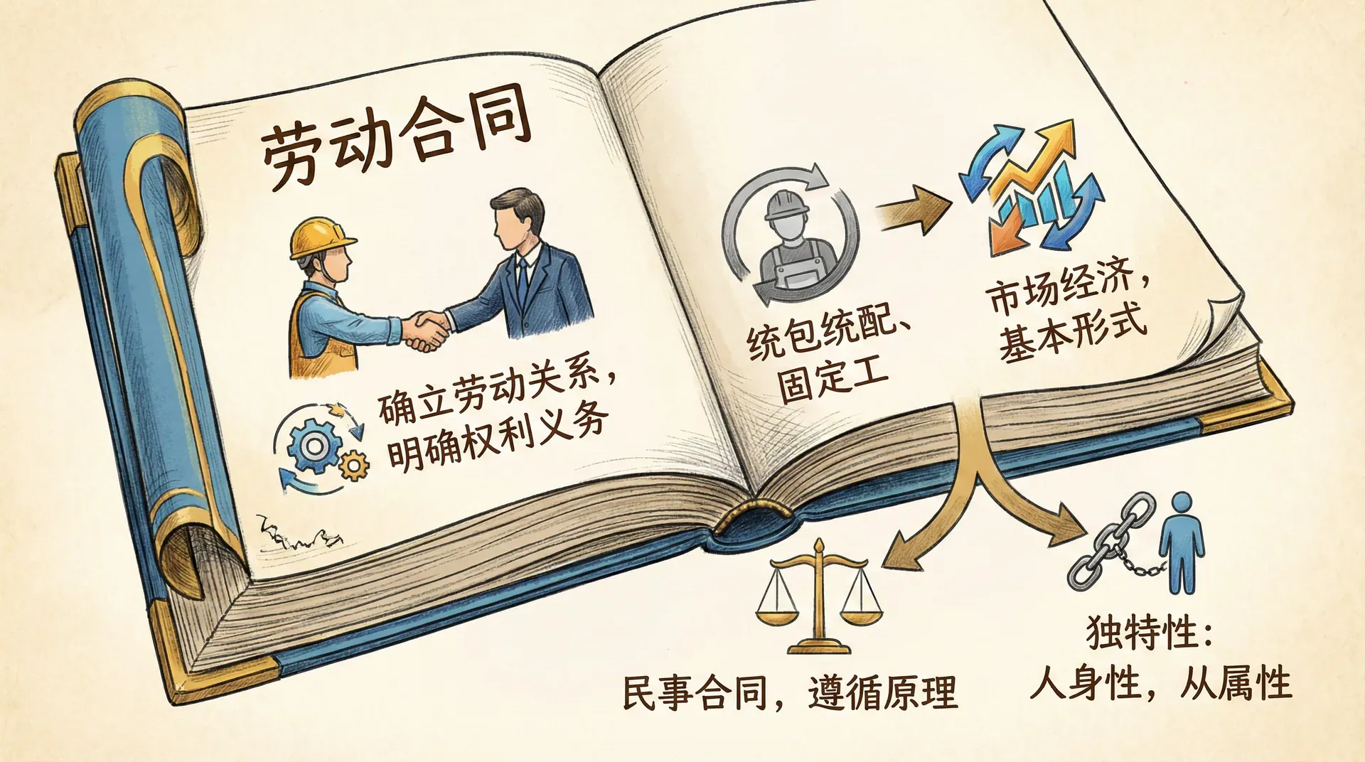 劳动合同是劳动者与用人单位之间确立劳动关系、明确双方权利和义务的协议。在市场经济条件下,劳动合同制度取代了过去的统包统配、固定工制度,成为劳动关系建立和运行的基本形式。劳动合同既是民事合同的一种,遵循合同法的基本原理,又因劳动关系的人身性和从属性特征而具有独特性。