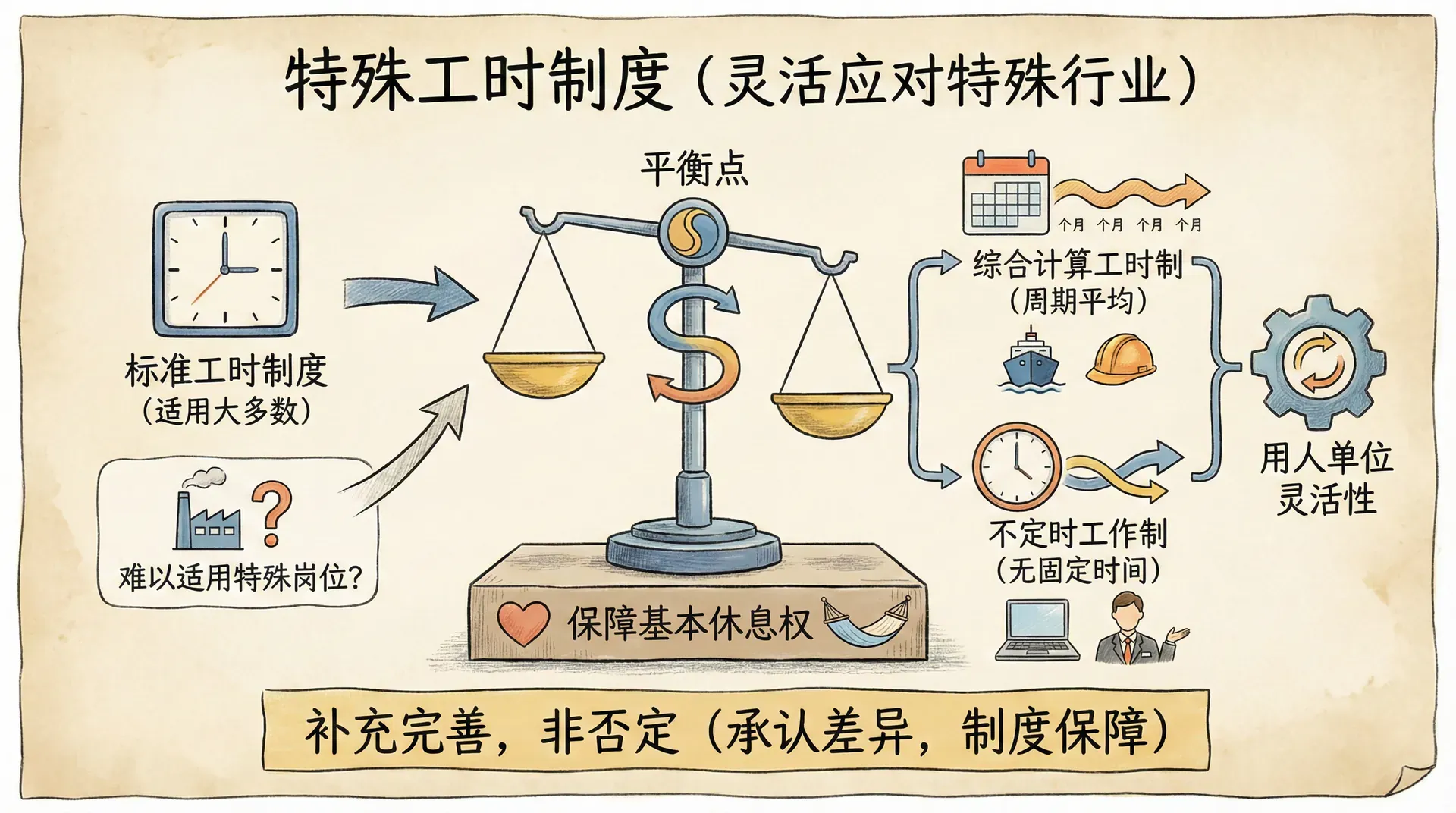特殊工时制度不是对标准工时制度的否定,而是补充和完善。它承认不同行业、不同岗位工作时间的差异性,在保障劳动者基本休息权的前提下,给予用人单位更大的灵活性。