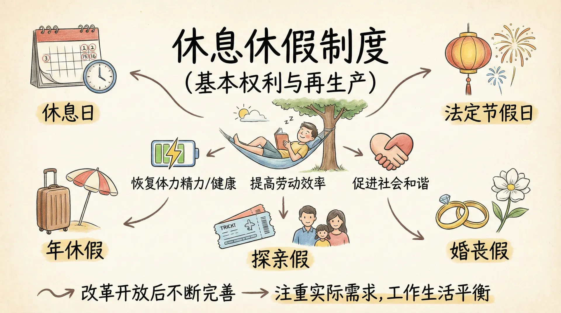 休息休假是劳动者的基本权利,是劳动力再生产的必要条件。合理的休息休假制度,不仅有利于劳动者恢复体力和精力,保持身体健康,也有利于提高劳动效率,促进社会和谐稳定。