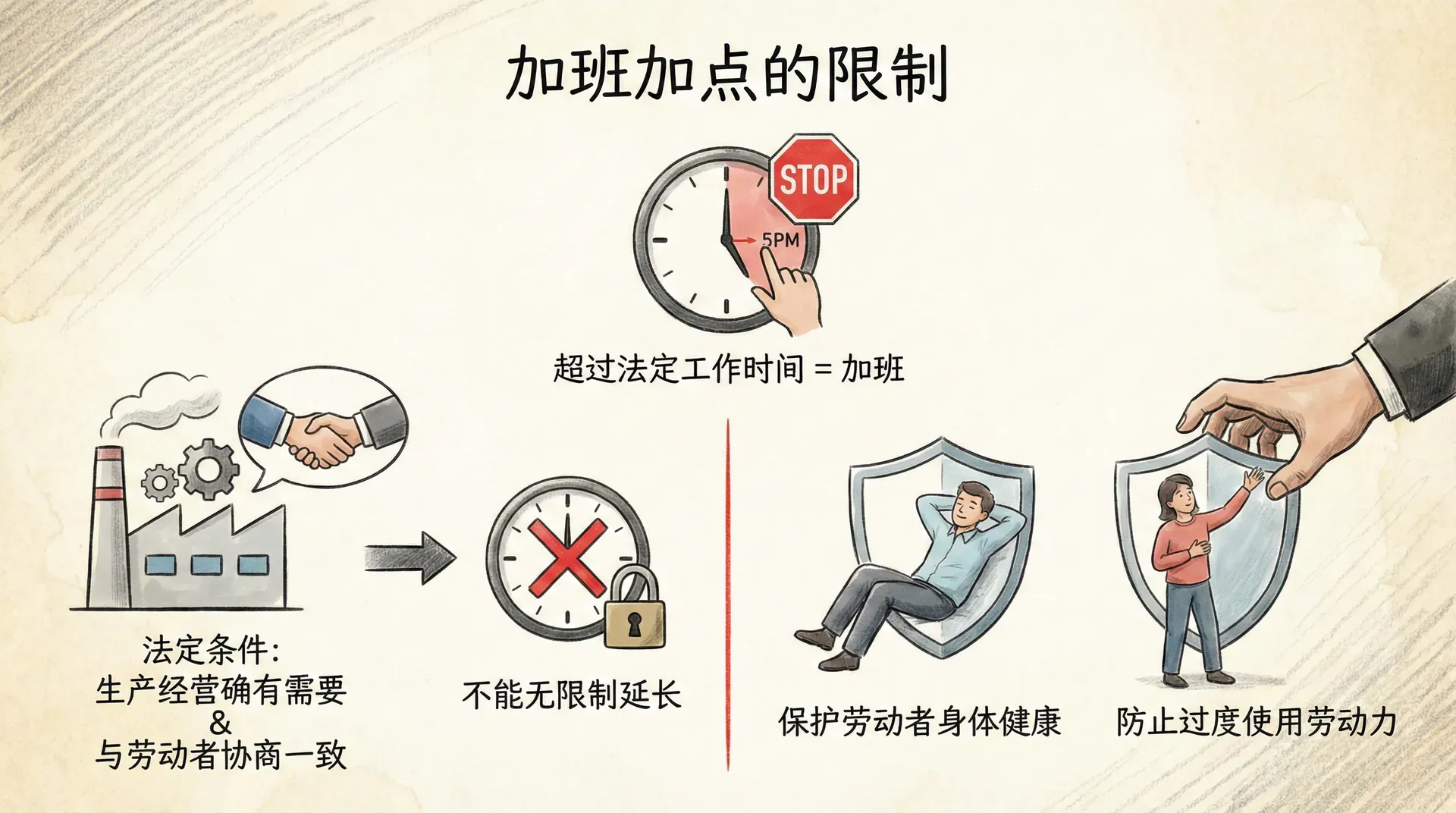 在标准工时制度下,超过法定工作时间的劳动就是加班。法律对加班作出严格限制,既是为了保护劳动者的身体健康,也是为了防止用人单位过度使用劳动力。