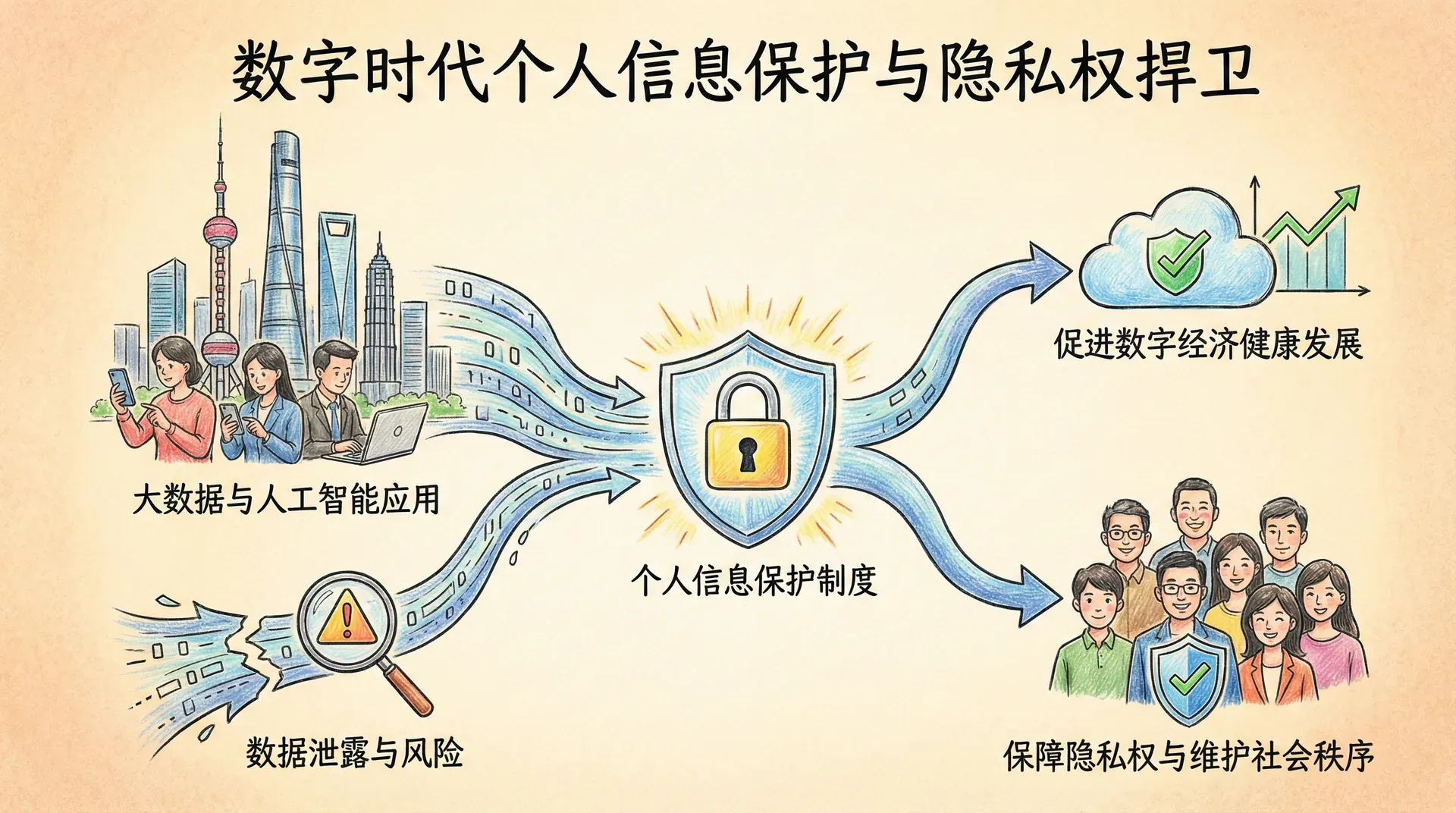 个人信息保护是隐私权在数字时代最重要的体现。随着大数据、人工智能等技术的广泛应用,个人信息的收集、存储、使用和传播变得空前便捷,同时也带来了前所未有的风险。建立完善的个人信息保护制度,既是保障个人隐私权的需要,也是维护社会秩序和促进数字经济健康发展的必然要求。