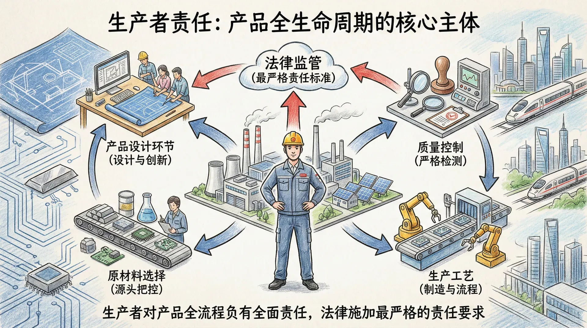 生产者是产品责任制度中最主要的责任主体。生产者对产品的设计、原材料选择、生产工艺、质量控制等各个环节负有全面的责任,因此法律对生产者施加了最严格的责任标准。