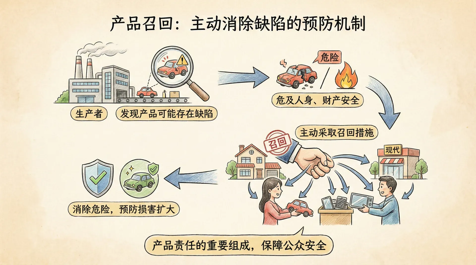 产品召回制度是产品责任制度的重要组成部分,也是预防产品缺陷损害扩大的有效手段。当生产者发现其生产的产品存在可能危及人身、财产安全的缺陷时,应当主动采取措施消除危险。